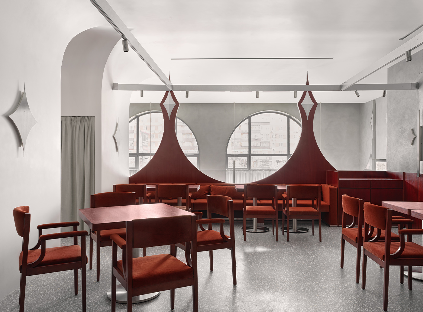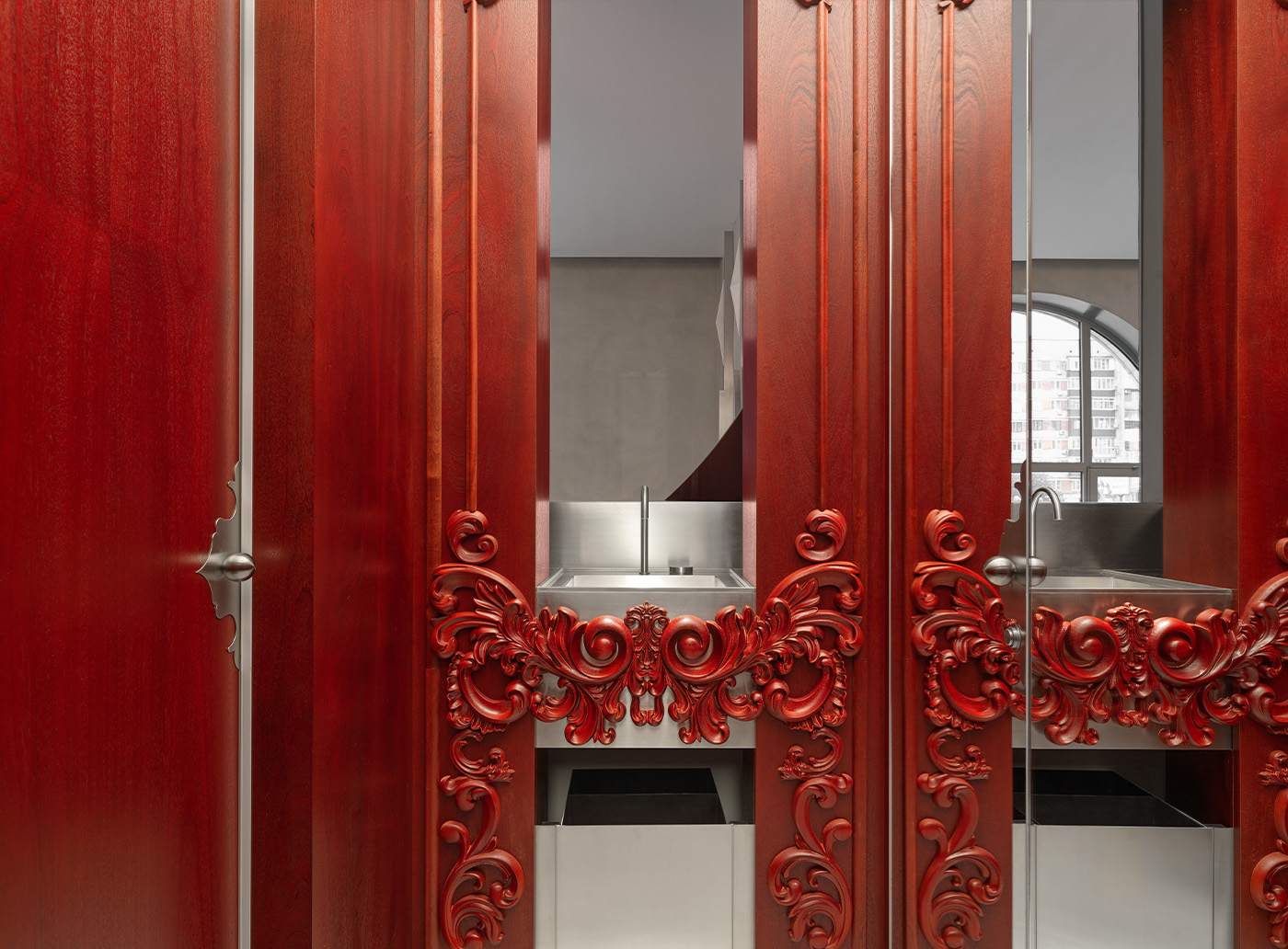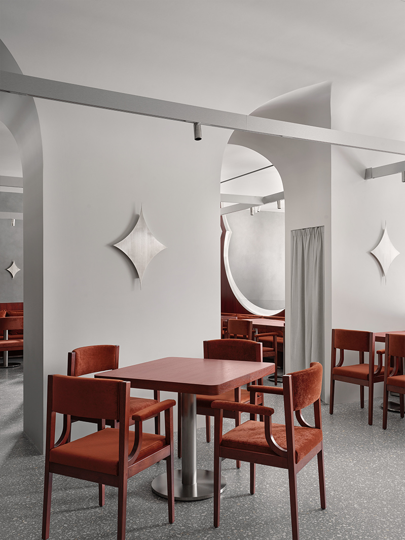 «Мы стали развивать эту форму, искать, во что можно ее преобразовать, поэтому вся архитектура выстраивалась как раз на подчеркивании этих арок. Так появилось центральное решение — металлическая перегородка», — отмечает архитектор проекта Елена Локастова.