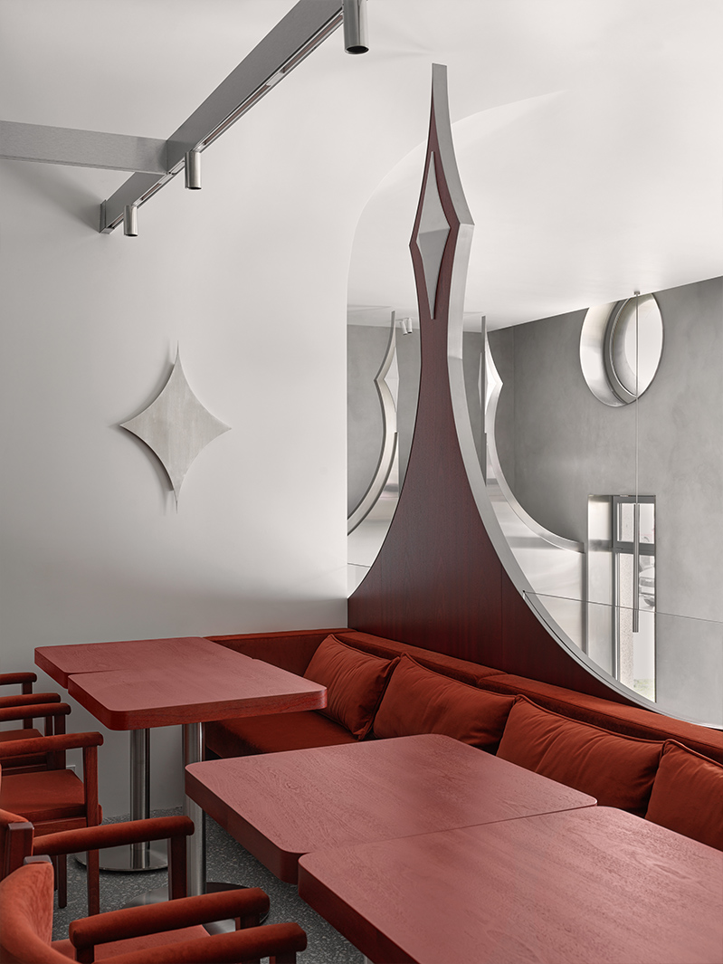 «При этом мы сохранили ощущение современности и технологичности. Кажется, что если бы русскую сказку рассказали на языке XXI века, то она выглядела бы именно так — как этот ресторан», — добавляет архитектор Елена Локастова.