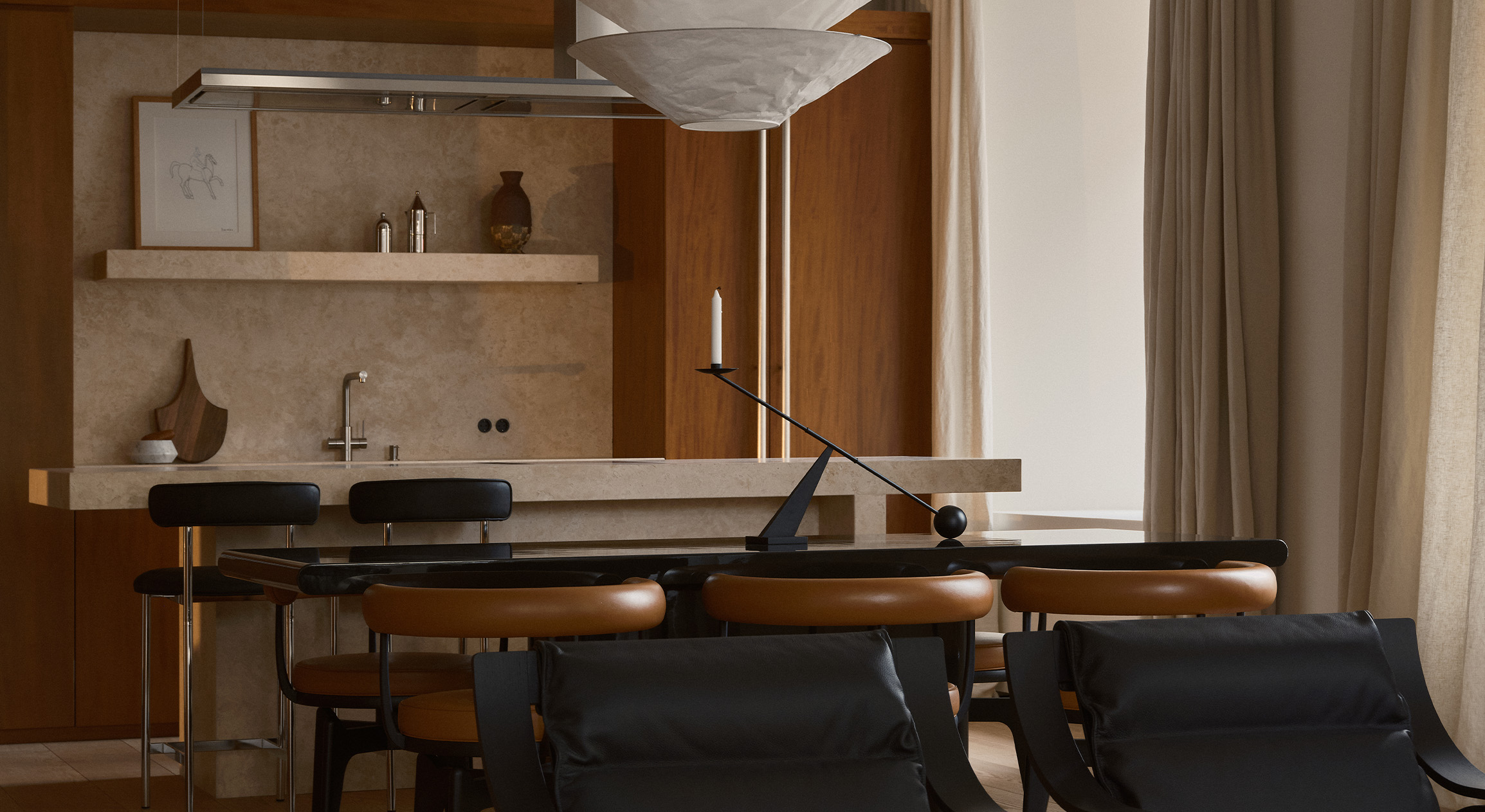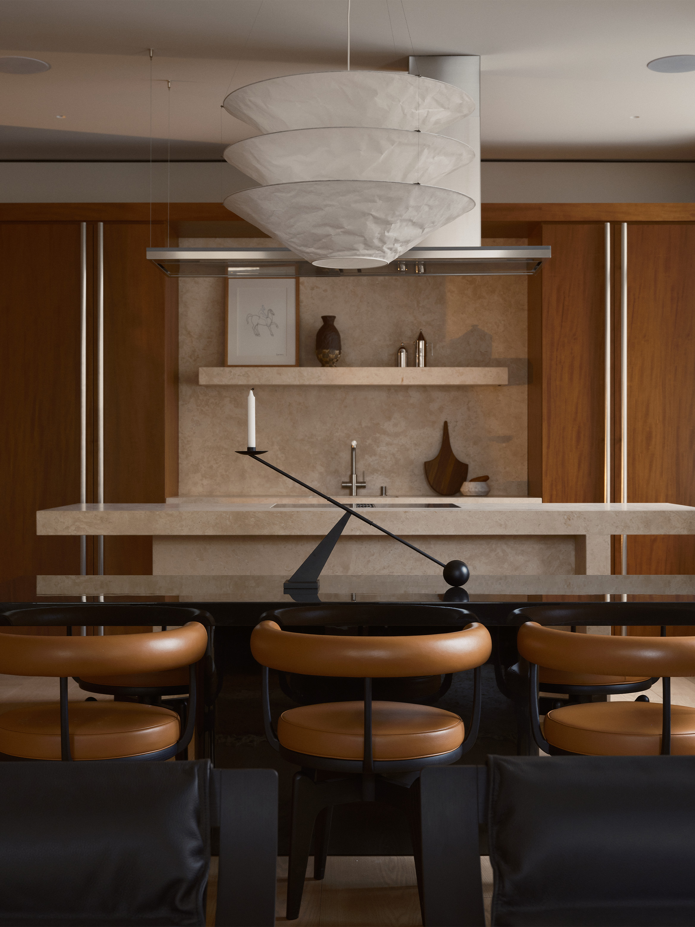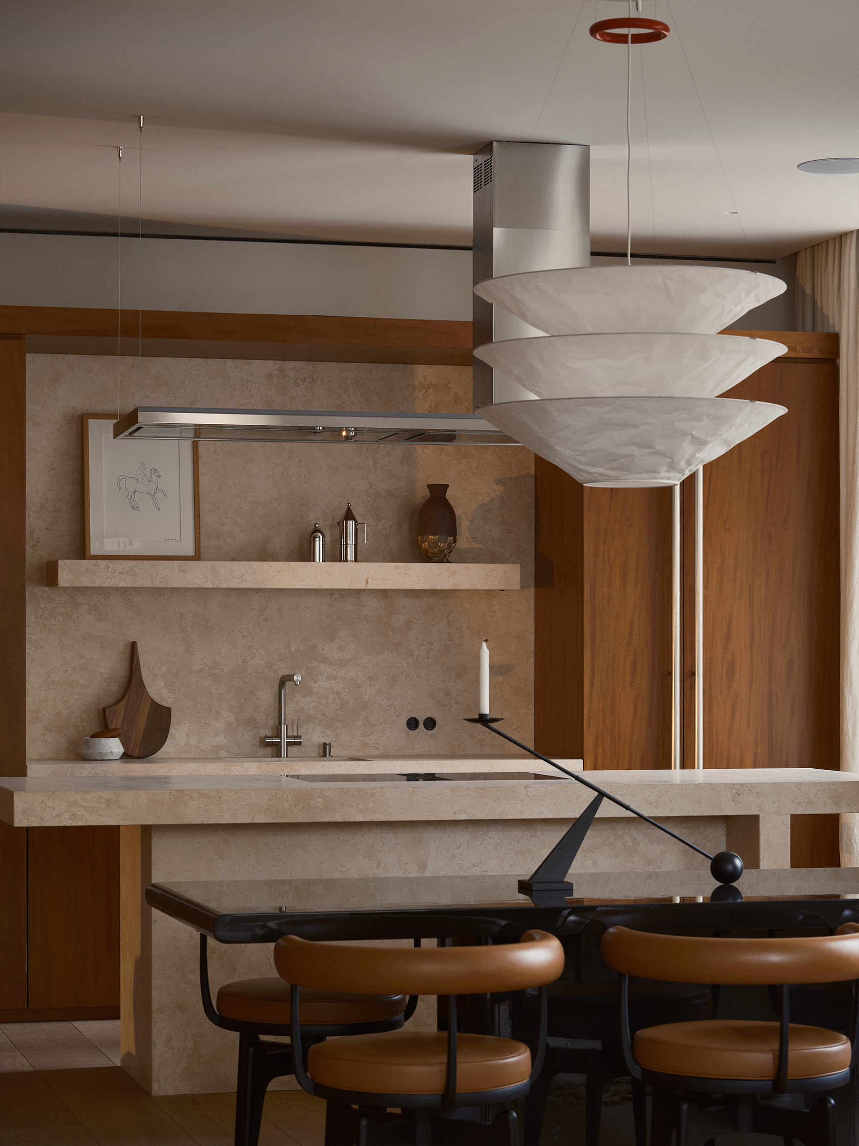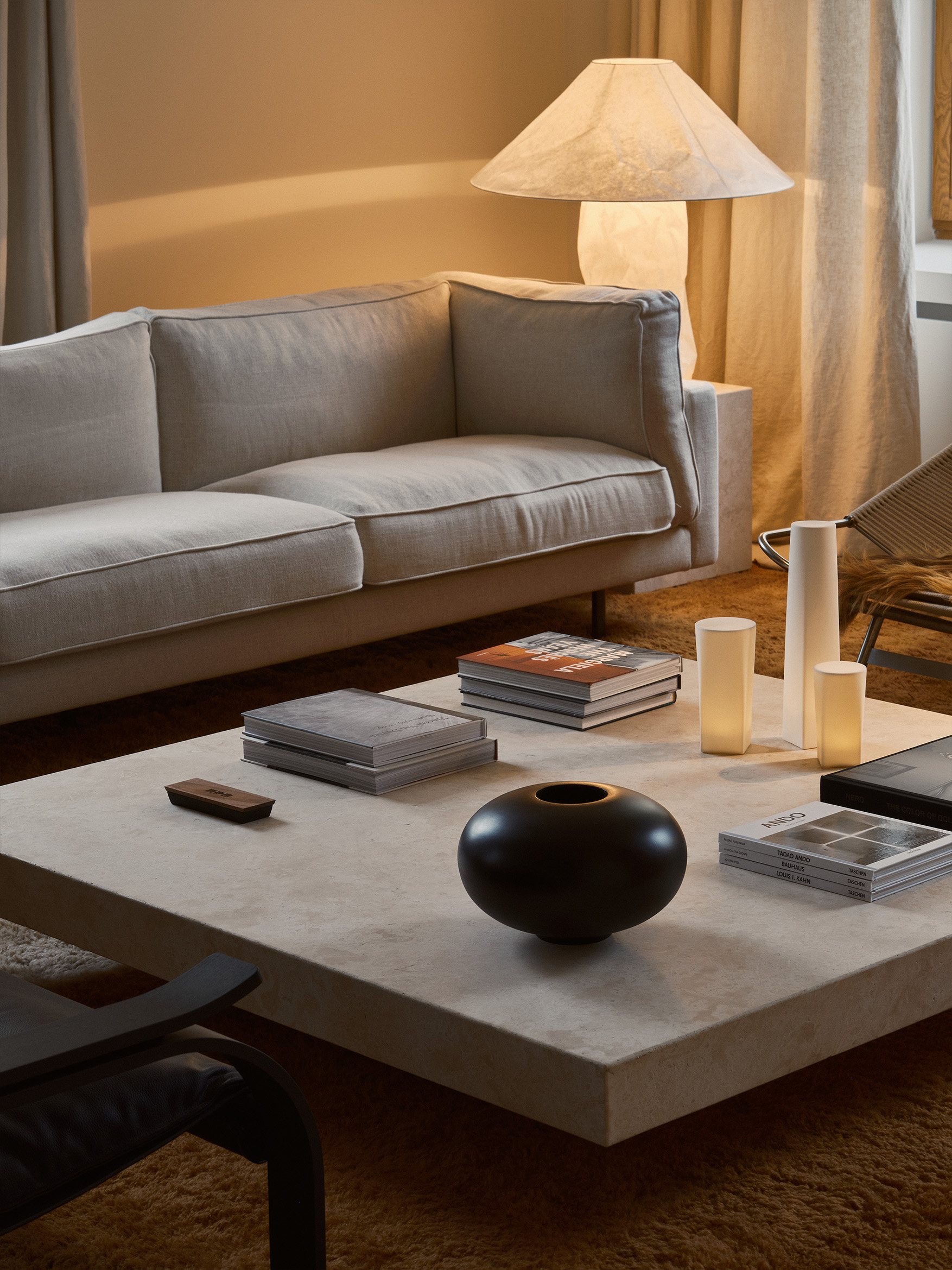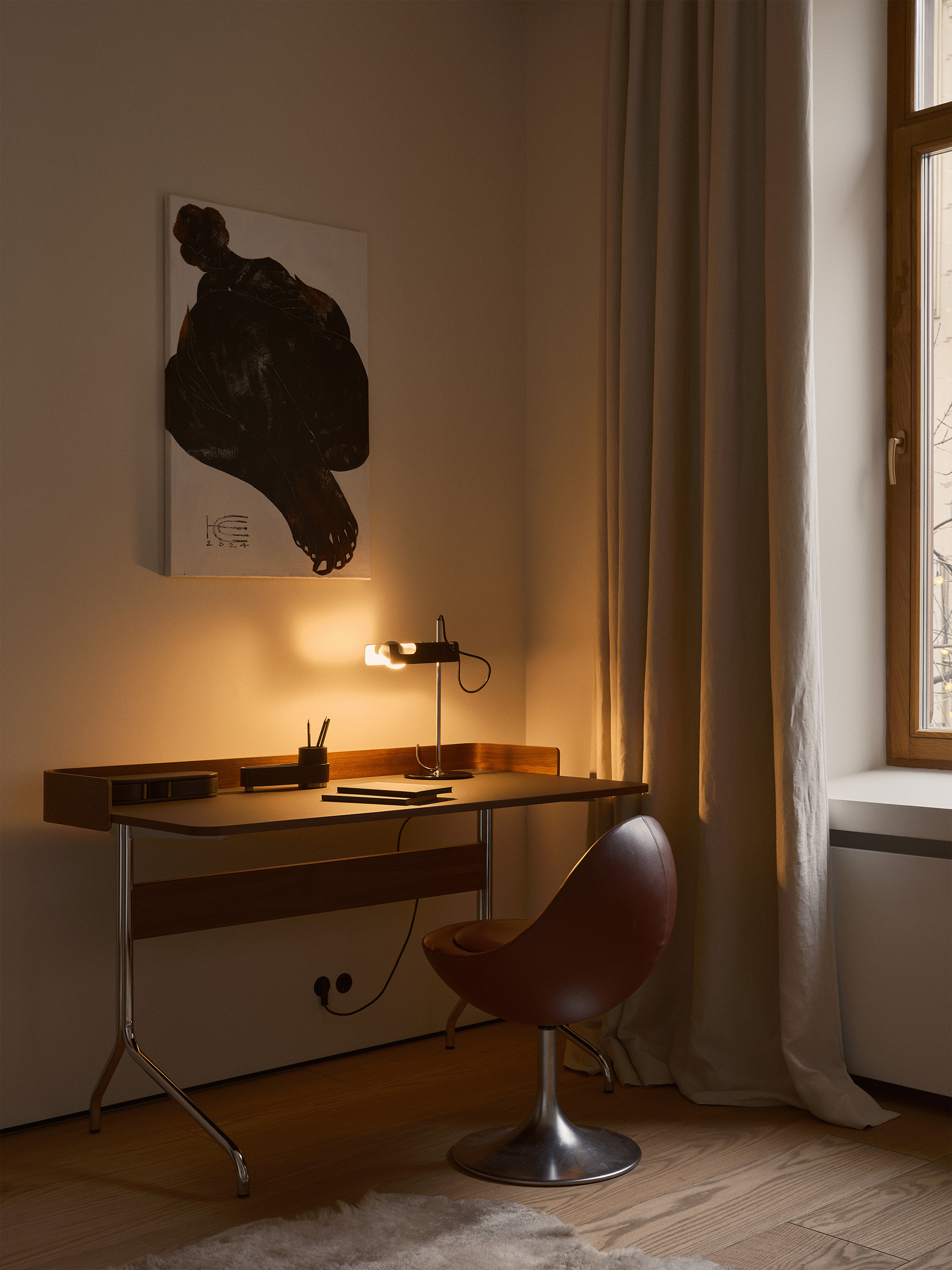 Еще один предмет из «бумажной» коллекции Маурера в этом интерьер — настольная лампа с забавным названием Lampampe, хрупкость которой очень созвучна настоящему времени.