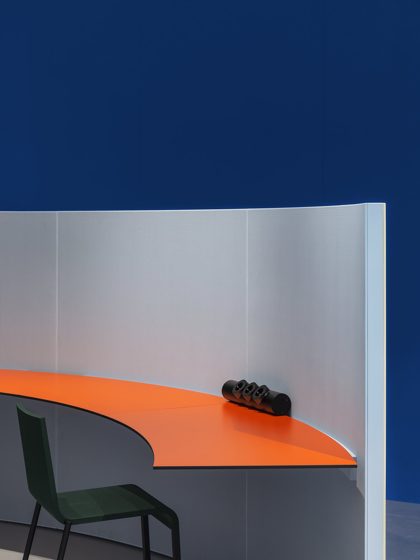 Широкий набор элементов — перегородки, стулья и столы различных конфигураций — сочетается с высокими техническими характеристиками. В конструкции интегрированы инженерные решения, акустические элементы, системы освещения и управления кабелями, а также многофункциональные предметы, включая двухуровневые столешницы.