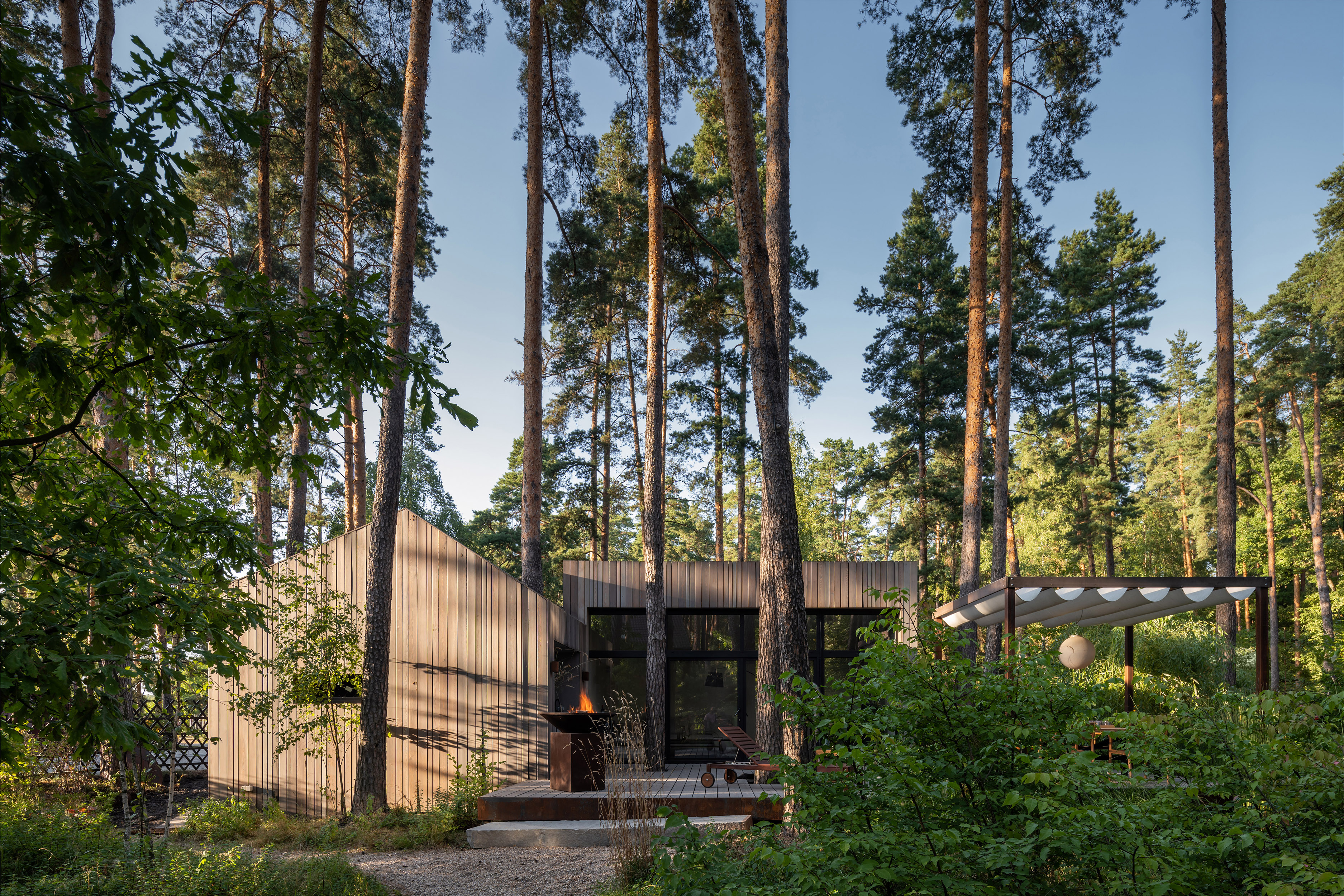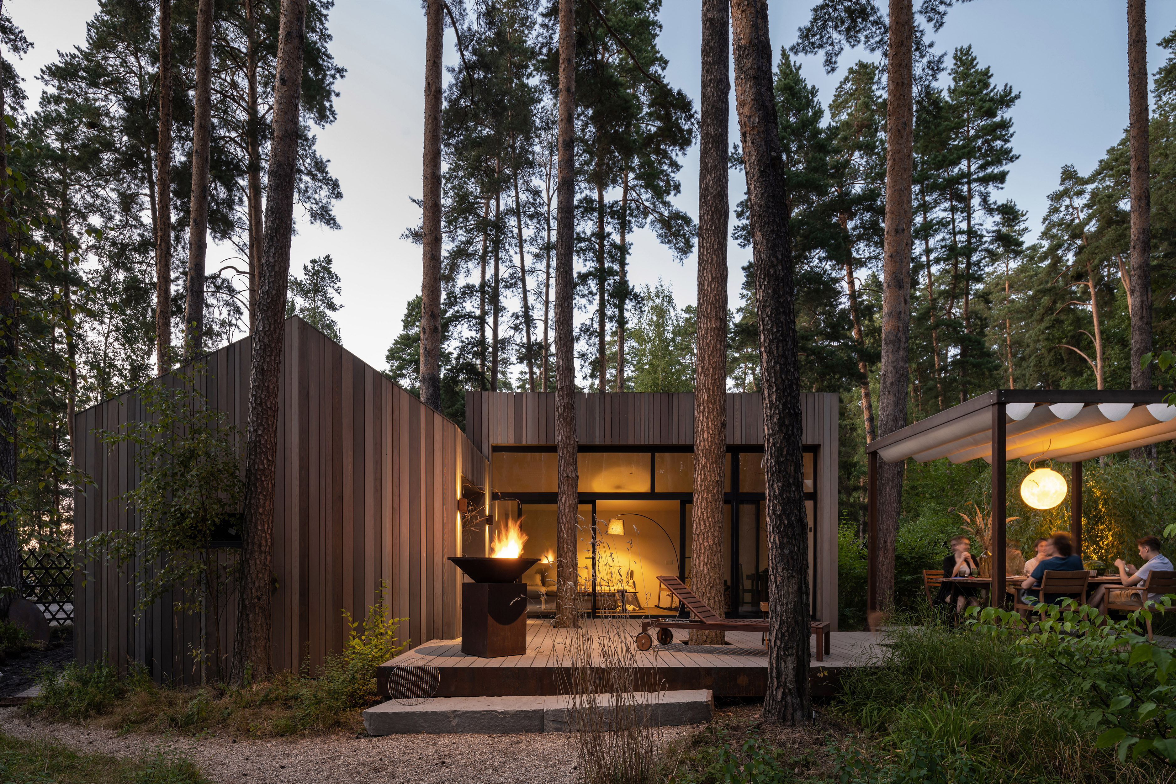 «Патио задумывалось как зона отдыха с семьей и друзьями на территории коттеджного поселка «Заповедный Бор» в Подмосковье. Мы поставили перед собой задачу тонко вплести новый объект в природный ландшафт, превратив его в гармоничное продолжение леса — пространство, где архитектура становится посредником между человеком и природой. Мы хотели сделать тактильную близкую к человеку и природе архитектуру, архитектуру эмоции, и очень рады, что этот подход, тонкий, интуитивный, нашел отклик у людей по всему миру», — Сергей Марков.