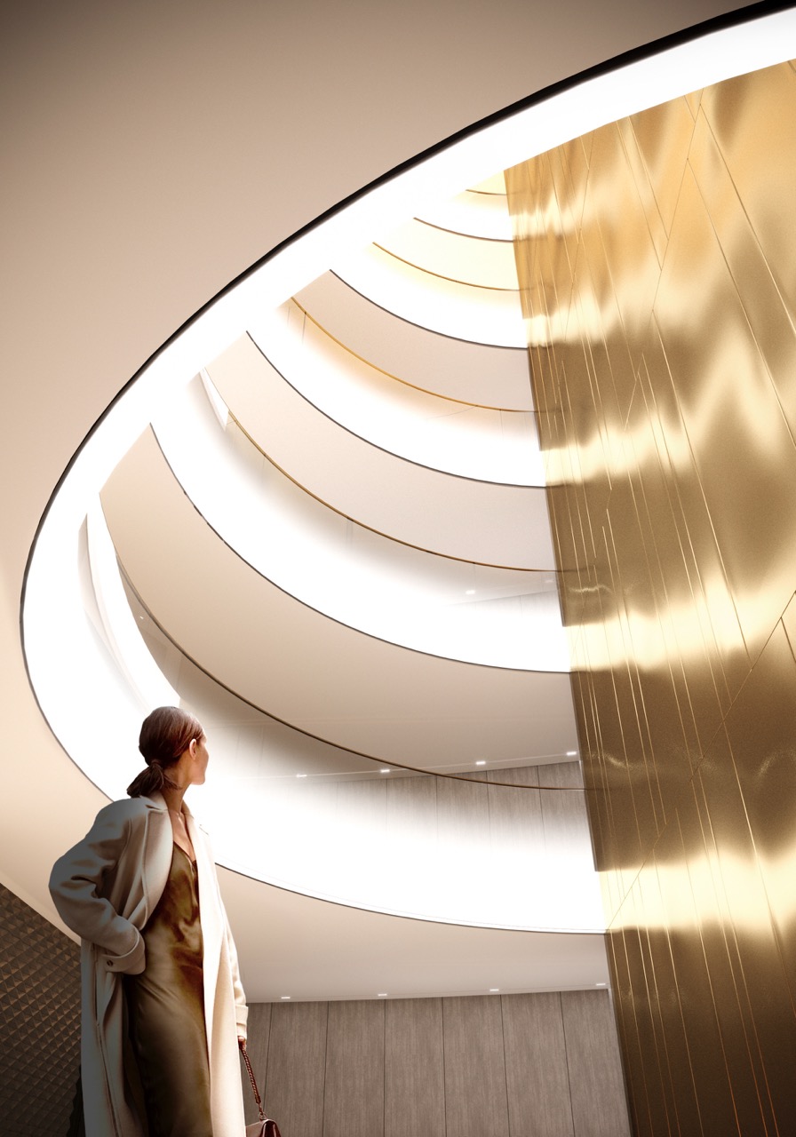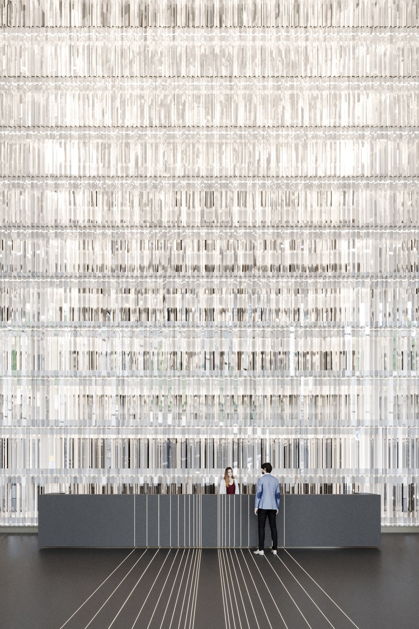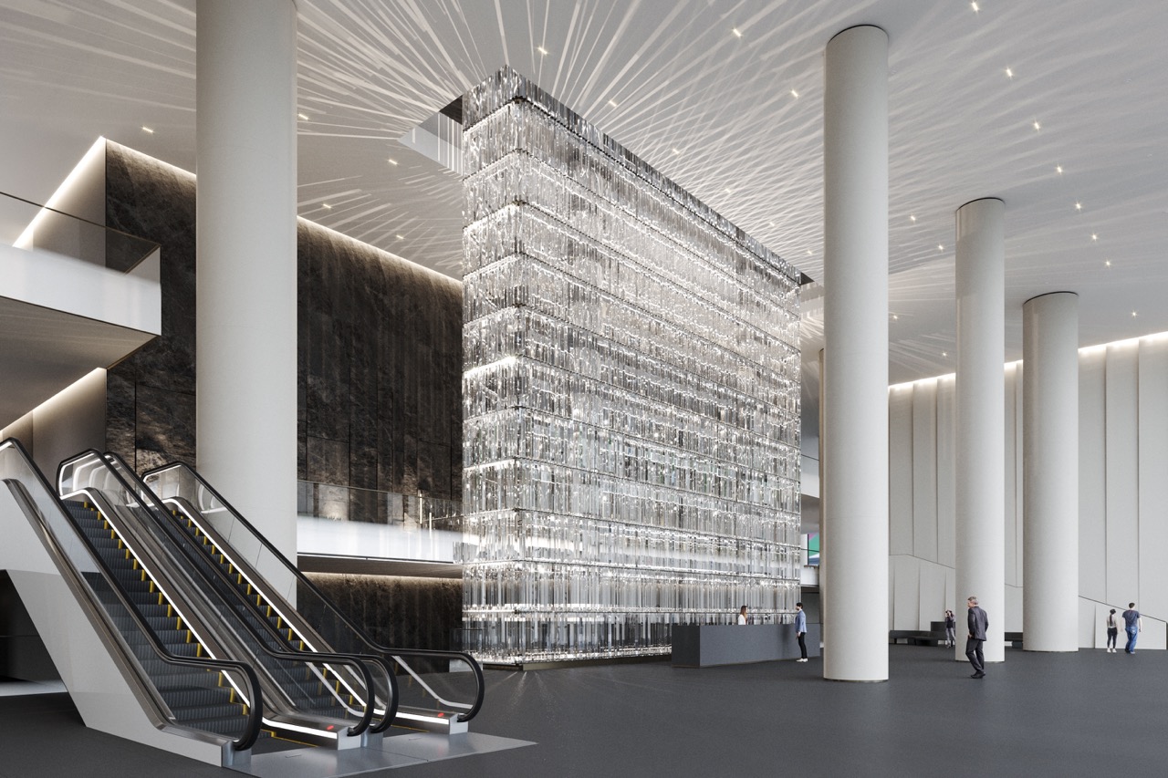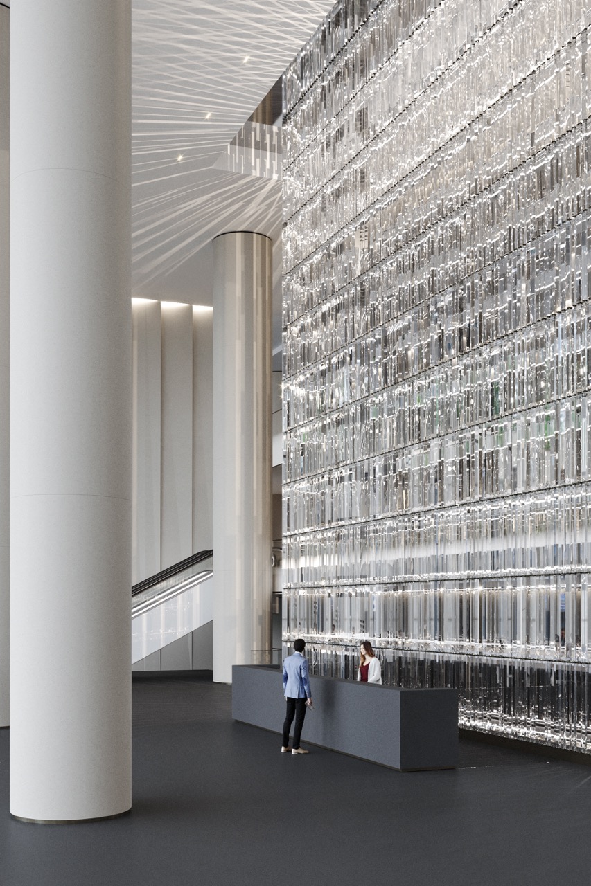 Основой дизайн-концепции лобби стала метафора света, проникающего в здание и преобразующего его. Архитекторам было важно показать, что в здании много пространства, воздуха и солнца. Так появилась идея создания большой световой инсталляции.