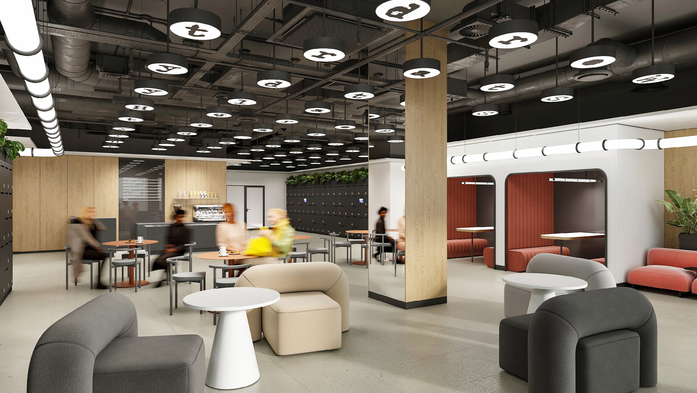 В помещениях для рекреации появятся светильники в форме пневмопочты — они будут изгибаться и образовывать петли, особенно в зонах, где требуется дополнительное освещение. Отправить капсулу по ним, конечно, уже не получится, но сам образ останется как визуальное напоминание о принципе передачи информации.