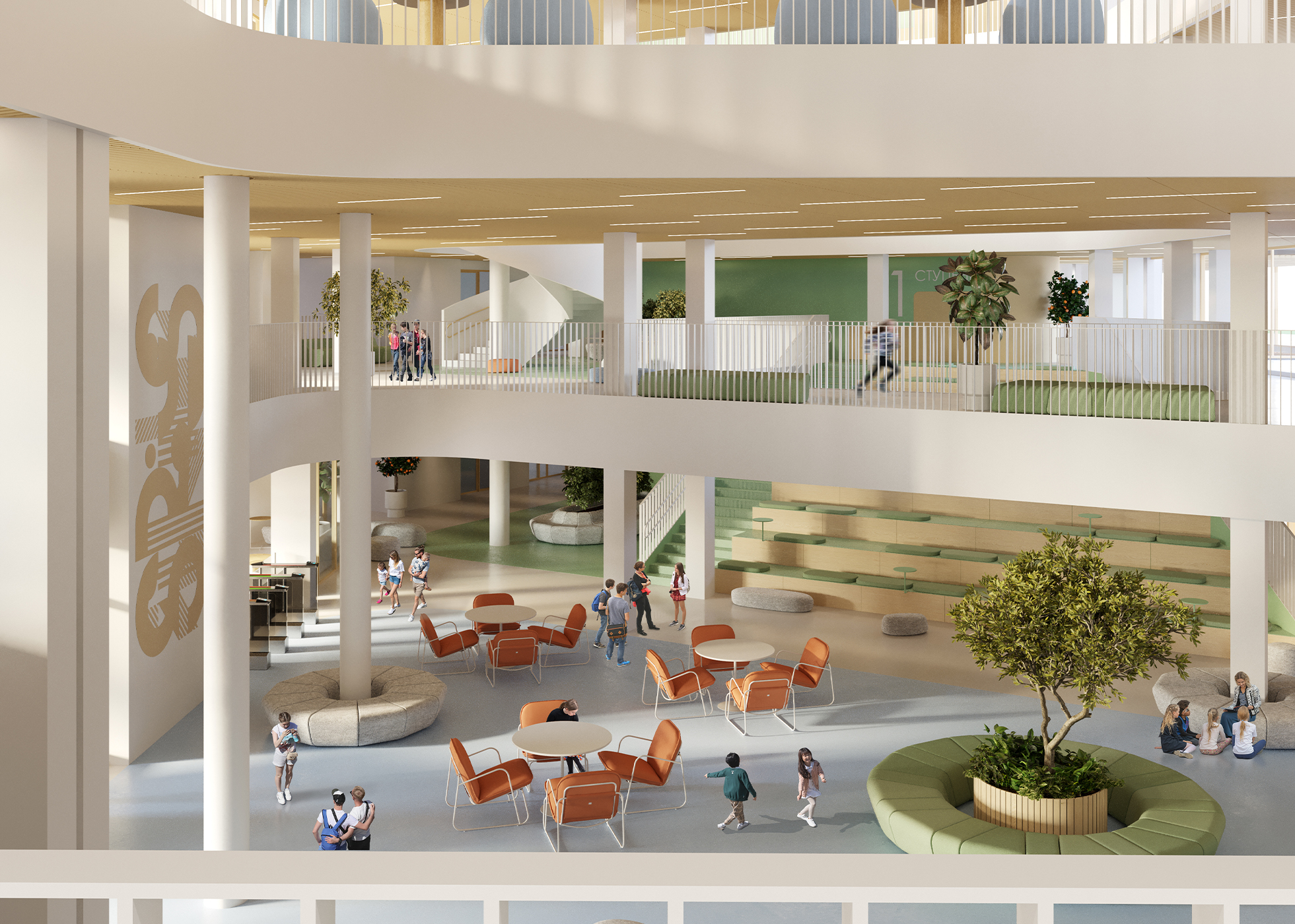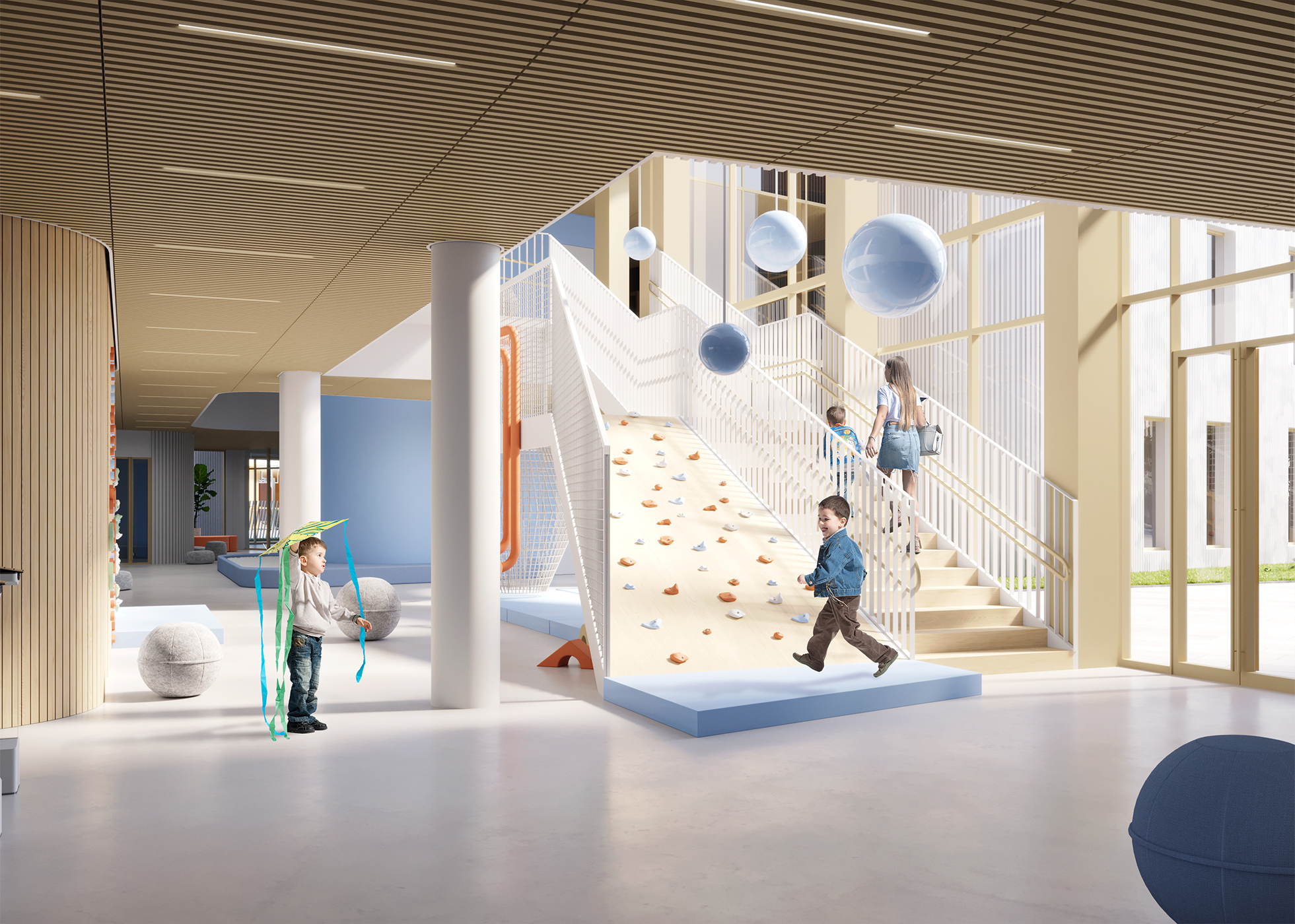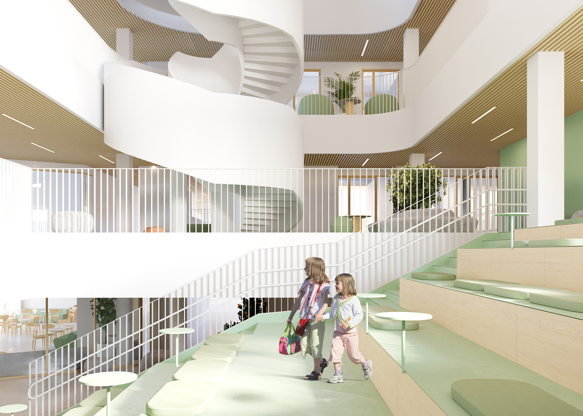 Общественные зоны комплекса связаны переходами и открыты через пешеходные маршруты для всех жителей федеральной территории. Благодаря этому кампус становится активным общественным пространством с постоянной событийной жизнью — своего рода «урбанистическим симулятором», который, согласно идее авторов, будет ненавязчиво формировать у детей навыки самостоятельного и осмысленного взаимодействия с городской средой.