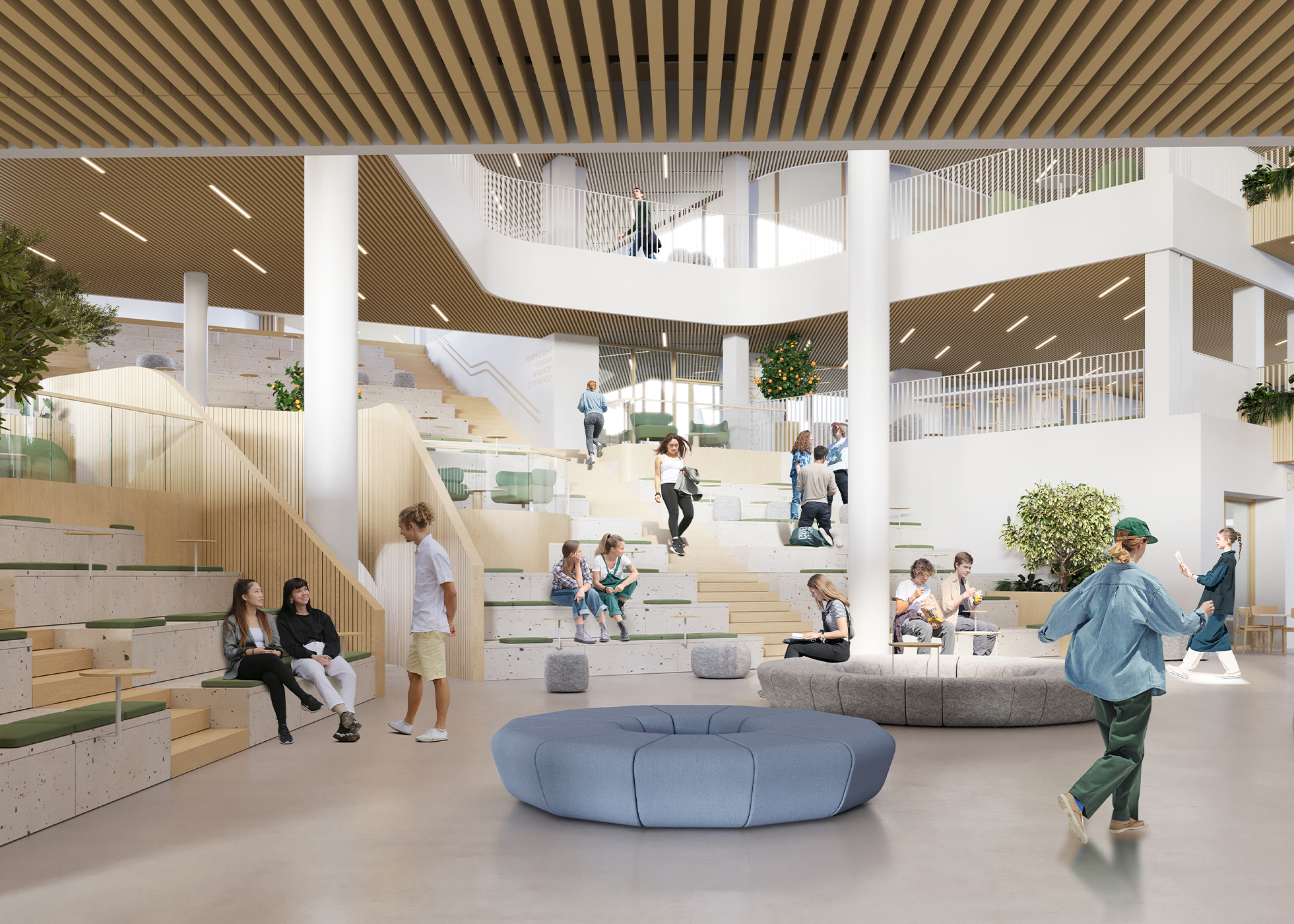 «Амбиция сделать лучшую школу России подтолкнула нас к поиску передовых инструментов, способных организовать гибкую образовательную модель, в которой пространство подстраивается под человека, а не наоборот. Учебные блоки не закреплены за одной функцией, а собраны вокруг общих зон, многосветных атриумов, в которых формируется культура самостоятельного поиска, работы в команде и коллективной ответственности. Так, конференц-зал на 800 мест спроектирован с отдельным входом, благодаря чему может работать независимо от основного режима школы, превращая кампус в гибридную институцию — не только образовательную, но и культурную, публичную. Подобное архитектурное решение способствует последующему развитию внутренних сообществ, что является ключевым фактором стимуляции социальной интеграции и творческого взаимодействия учащихся для крупных образовательных центров», — отмечает Анастасия Галуткина.