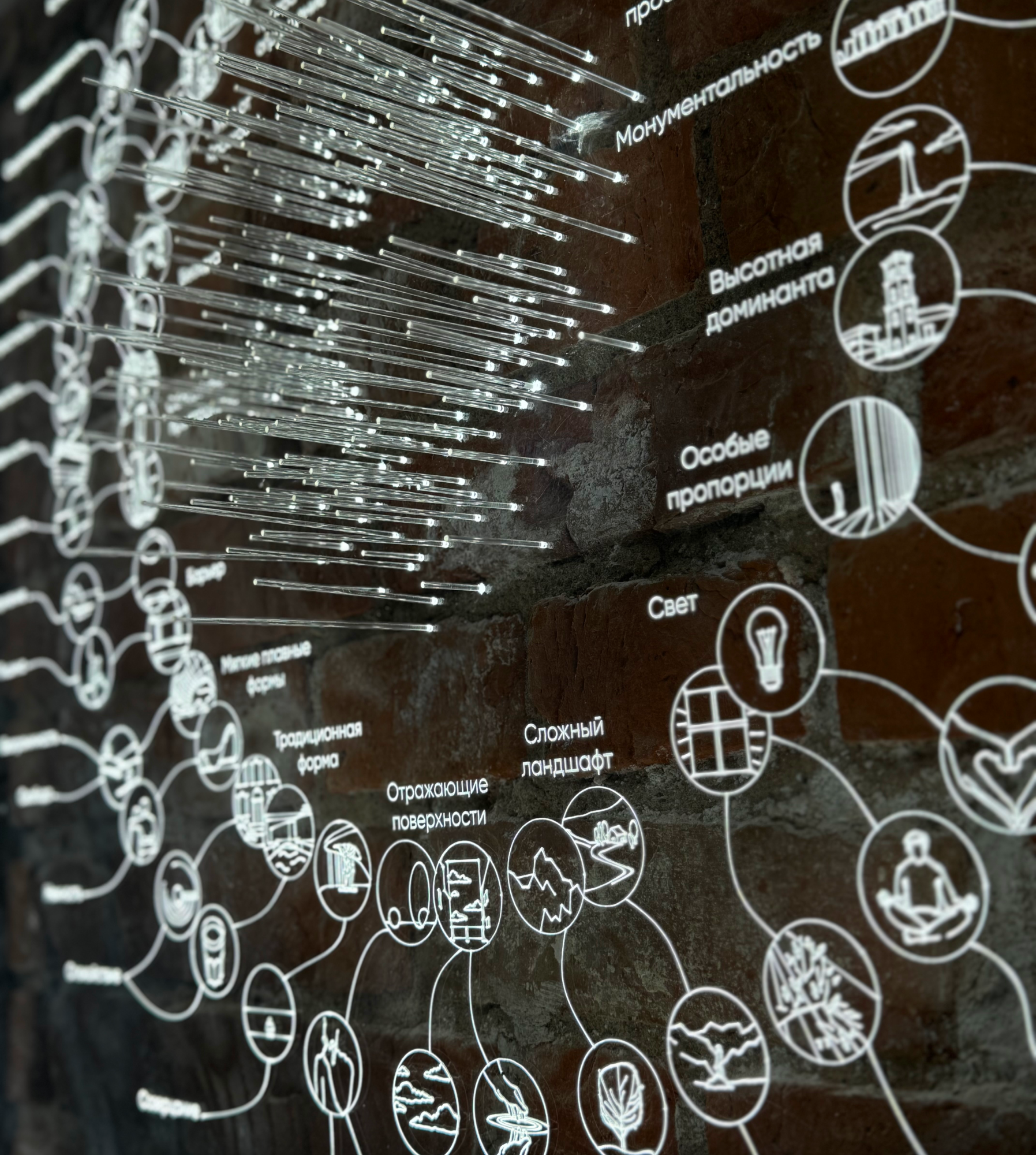 Команда провела масштабное исследование понятия сакральности в архитектуре. Студенты анализировали личный опыт восприятия сакральных мест, создавали ассоциативные карты и переводили абстрактные понятия в конкретные архитектурные решения.
