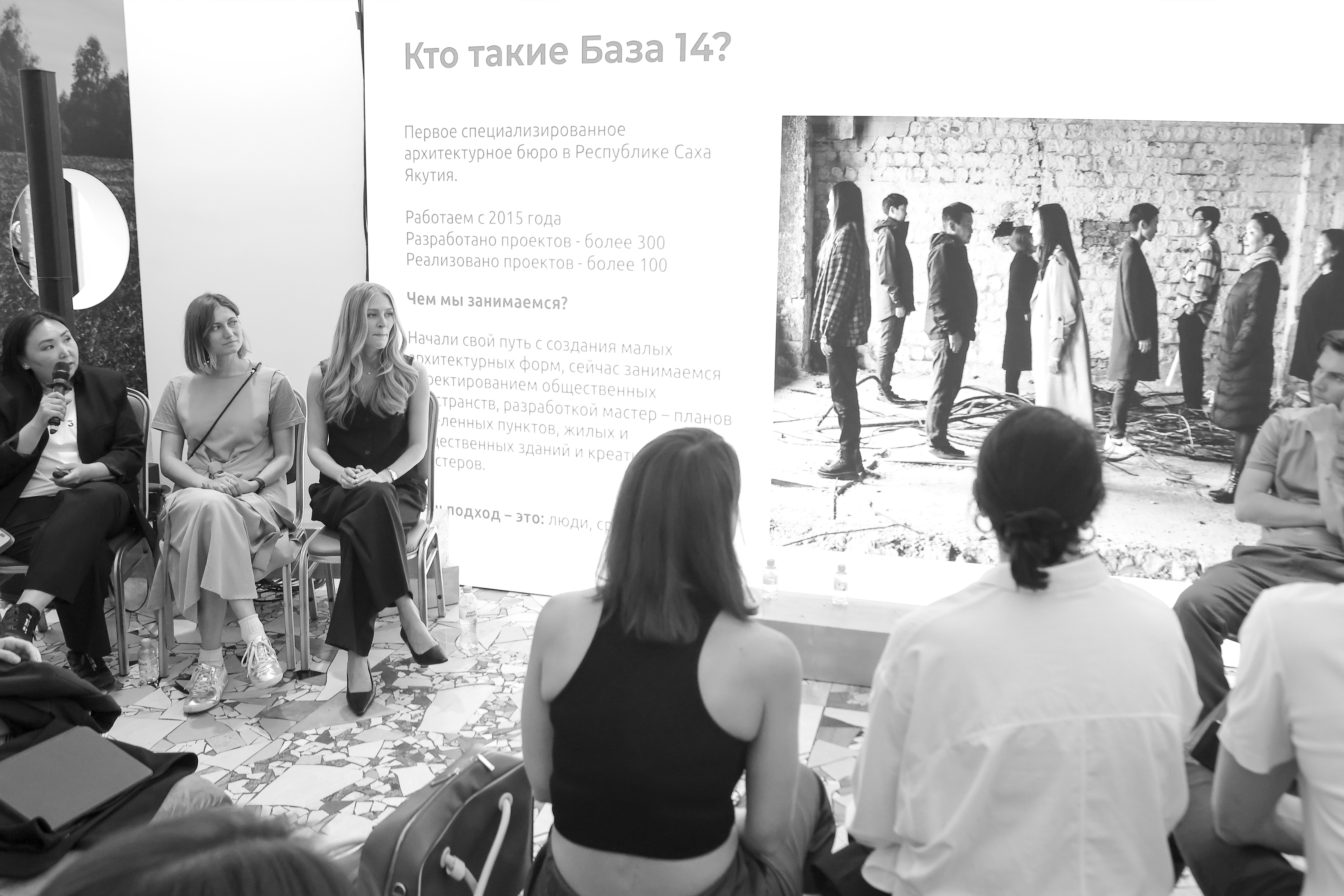 Мария Скрябина, основатель и руководитель архитектурного бюро «База 14» говорила о тонкостях передачи традиций и представила проекты из Якутии: эко-парк для центра золотодобытчиков «Орто Сала», международный аэропорт имени Платона Ойунского и мастер-план поселка Хандыга.