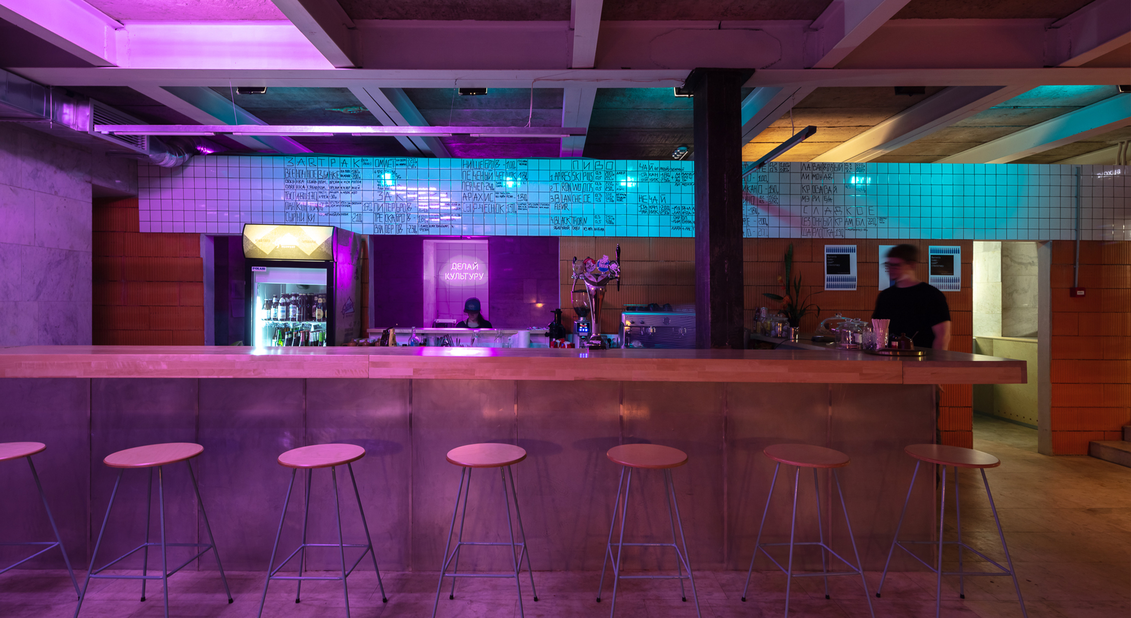 Совсем в другом контексте находится бар и независимое культурное пространство «Делай культуру / ДК». Его основатели много лет занимались организацией альтернативных городских мероприятий: от фестиваля независимого кино и граффити до киноклубов и поэтических вечеров. Бар стал точкой притяжения для большого сообщества единомышленников и площадкой для новых событий.