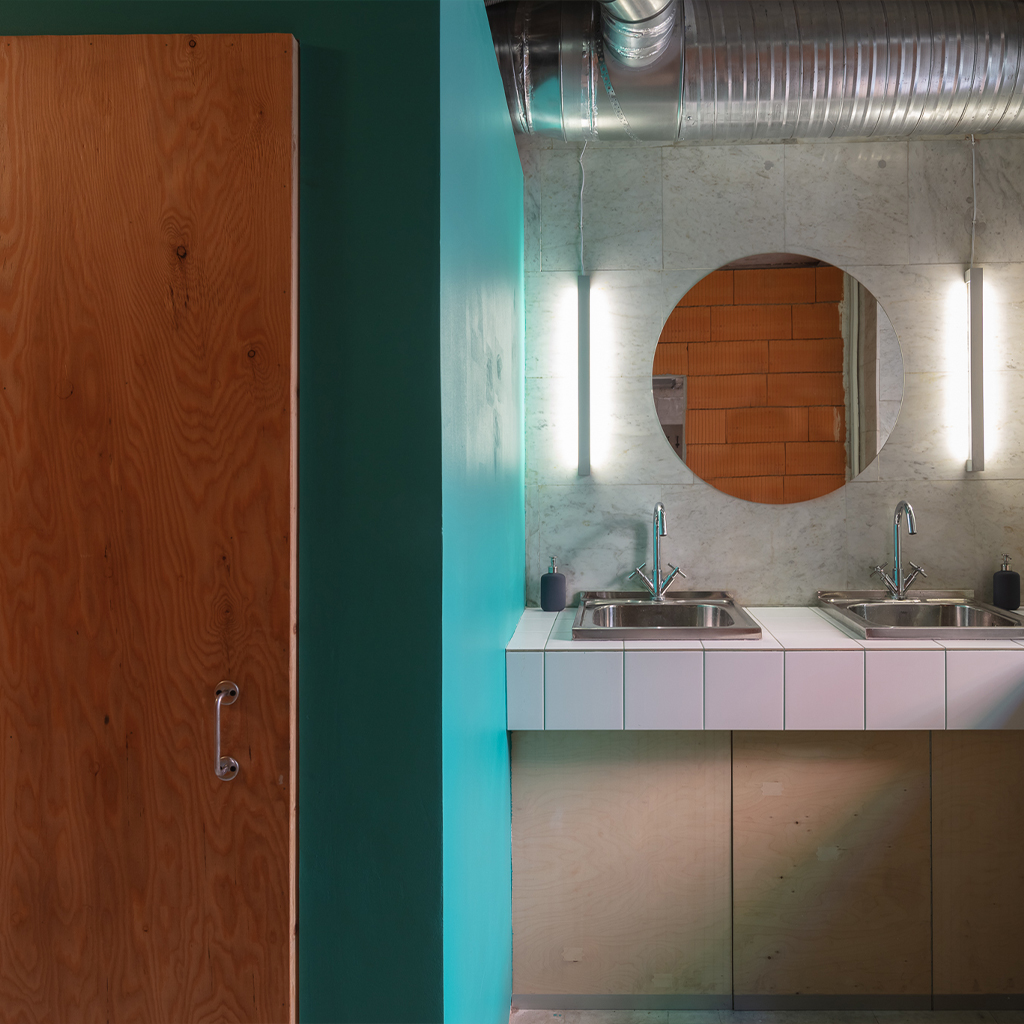 Проект создавался на энтузиазме как основателей, так и нас как архитекторов. В рамках творческого объединения Prostor Collective я, Антон Архипов, совместно с Григорием Цебренко разработали интерьер, используя нестандартные и экономичные решения. Например, двери для санузлов выполнены по нашим чертежам из материалов строительного гипермаркета, книжный стеллаж собрали прямо на стройке из фанеры, а абажуры из меди — результат нашего собственного дизайна: мы начертили раскрой, купили лист меди и вырезали конусы вручную.