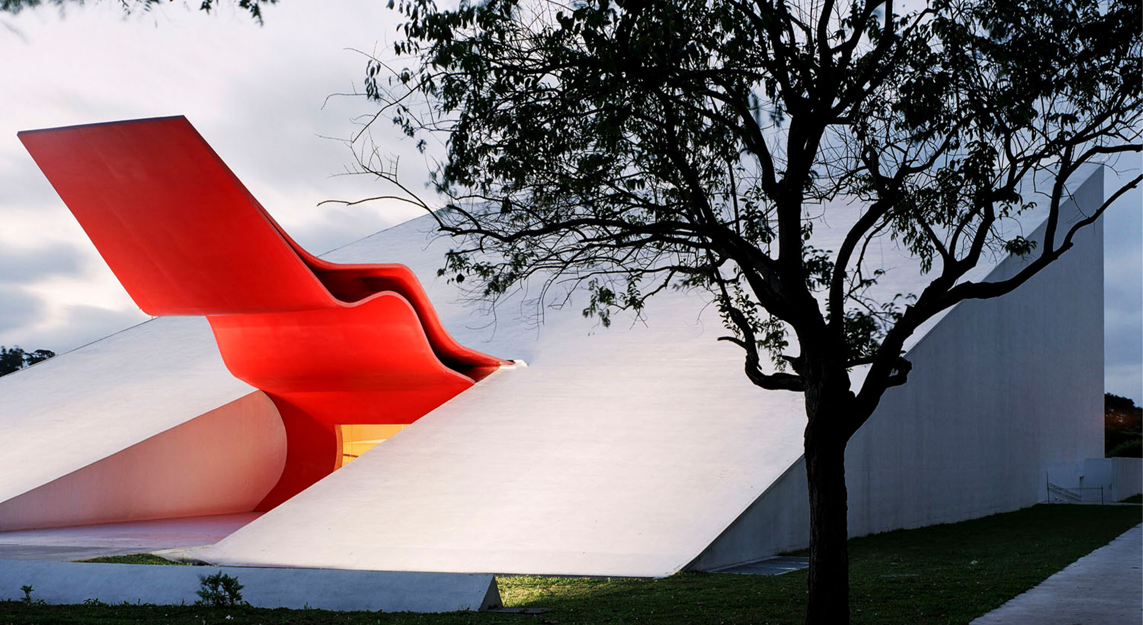 Концертный зал парка Ибирапуэры был задуман Оскаром Нимейером еще в 1950-е годы, но реализовать его архитектор смог лишь в 2000-х. Алый козырек-язык получил название labareda — пламя, отсылающее к знамени Сан-Паулу. Автор — скульптор японского происхождения Томиэ Отаке, еще одна знаменитая женщина-эмигрант в художественном сообществе Сан-Паулу. Стена концертного зала может опускаться, превращая все пространство парка в сцену.