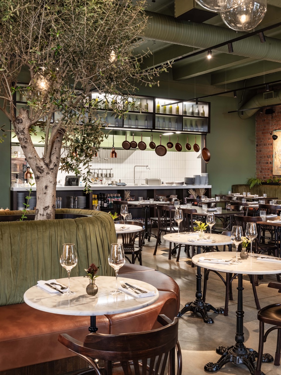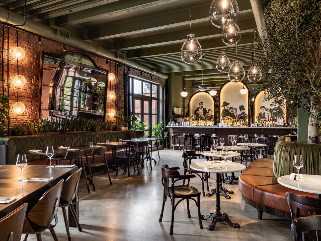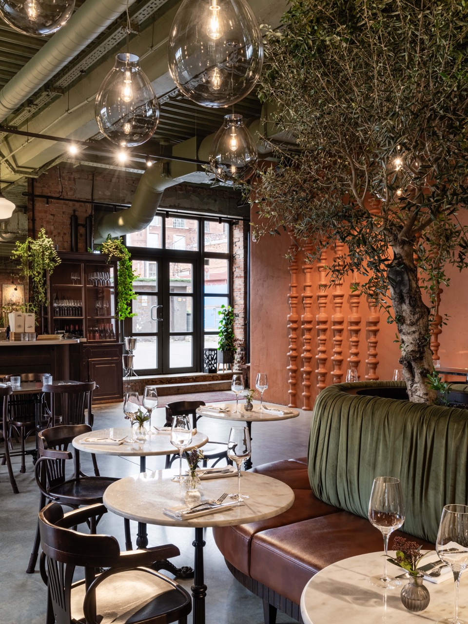 Пространство бистро рассчитано на несколько форматов: камерные уголки для приватных встреч или просторная зона вокруг оливковых деревьев для обедов и дегустаций. Архитекторы отмечают, что этот проект стал настоящим открытием: гармония рождается не из единообразия, а из уважительного диалога между разными культурами. Именно это ощущение тепла и гостеприимства и стремились передать авторы в каждом элементе интерьера.