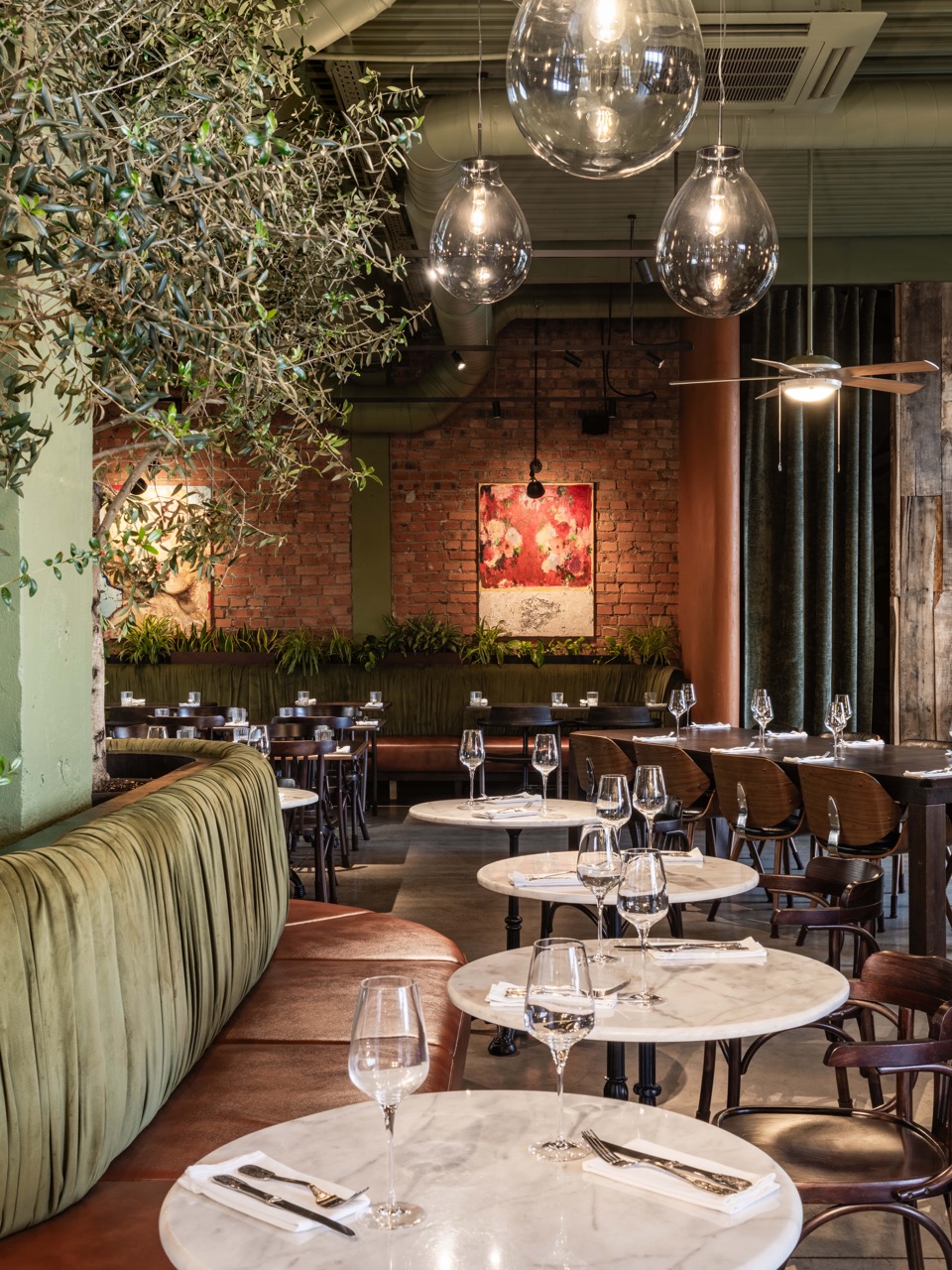 «Особенно запомнился момент установки оливковых деревьев, — дополняют архитекторы, — в тот день весь зал будто ожил. Мы тщательно подбирали свет, оттенки глины и текстуры, чтобы создать ощущение южного тепла без прямых цитат».