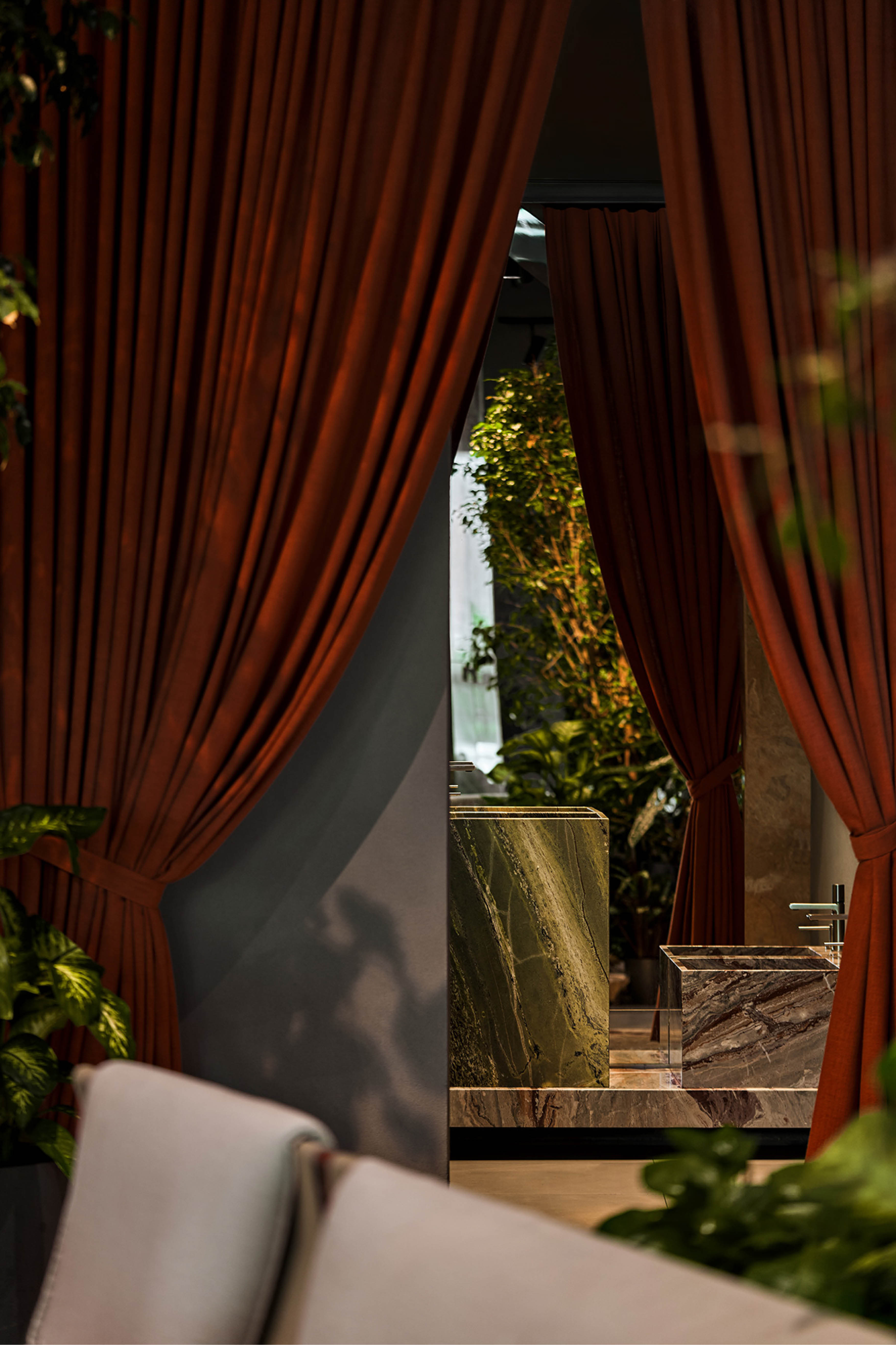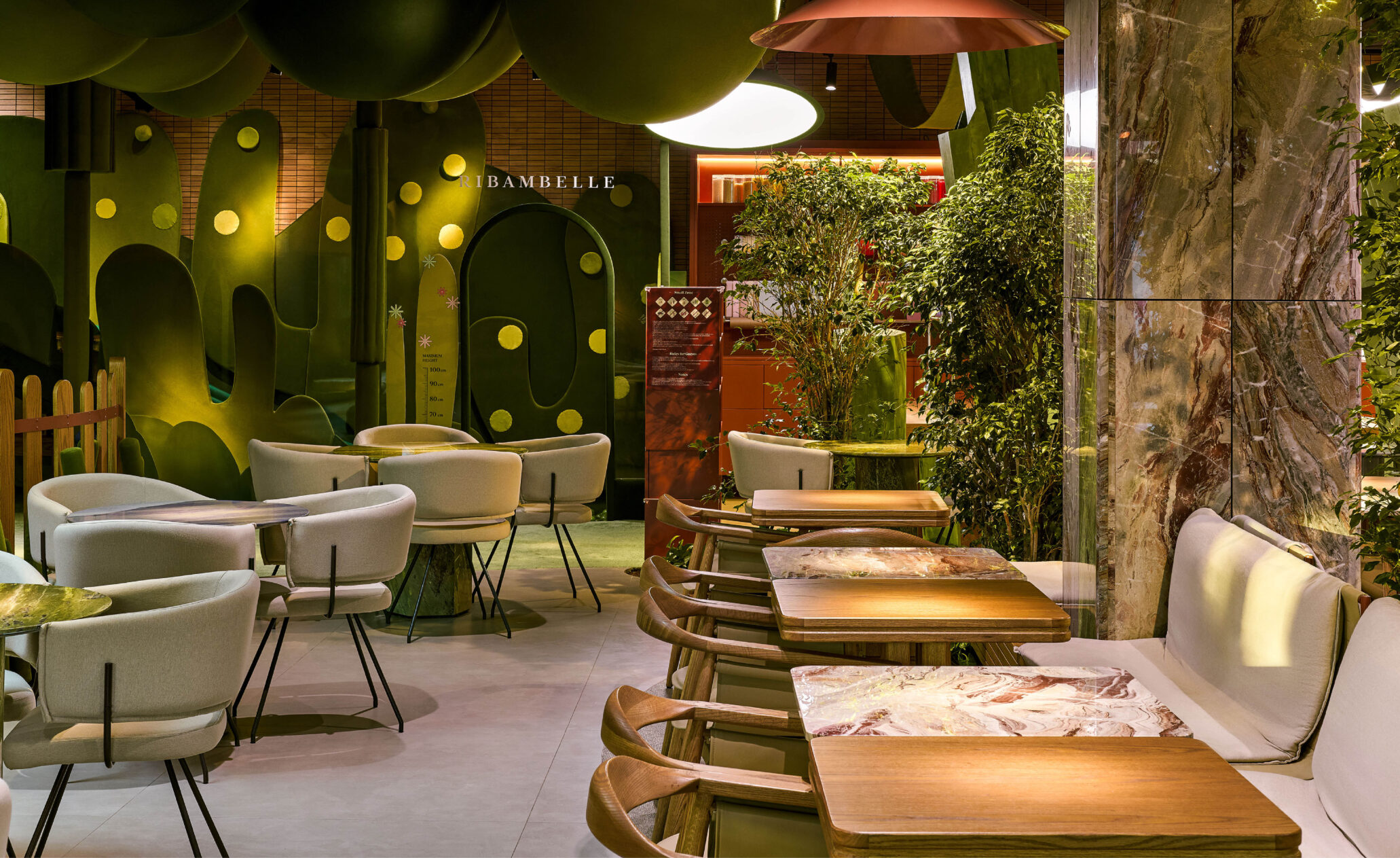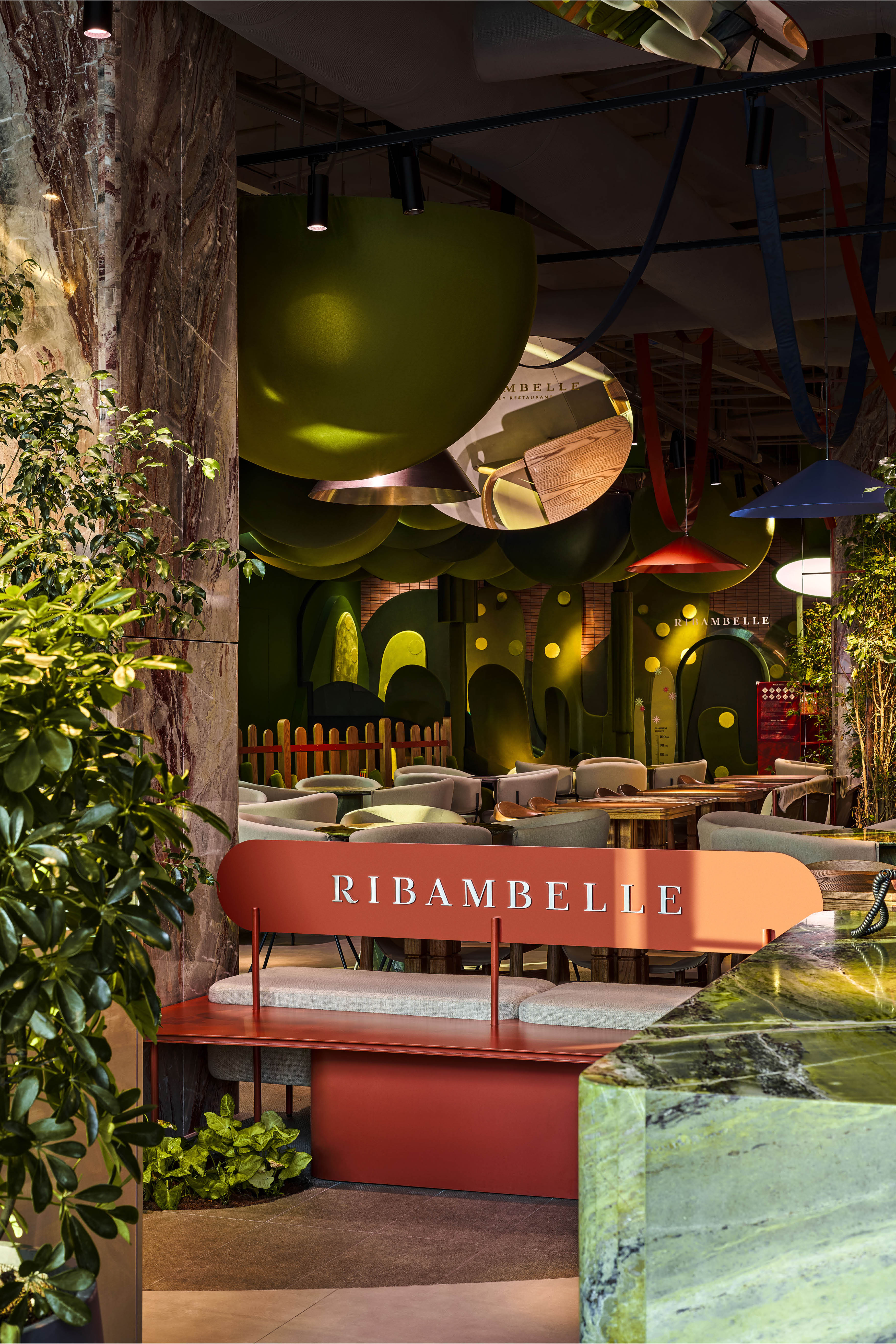 Образ Ribambelle – природный оазис в Дубае, где мало зелени. Мы вдохновлялись образом парка в мегаполисе, пространства отдыха и уединения.