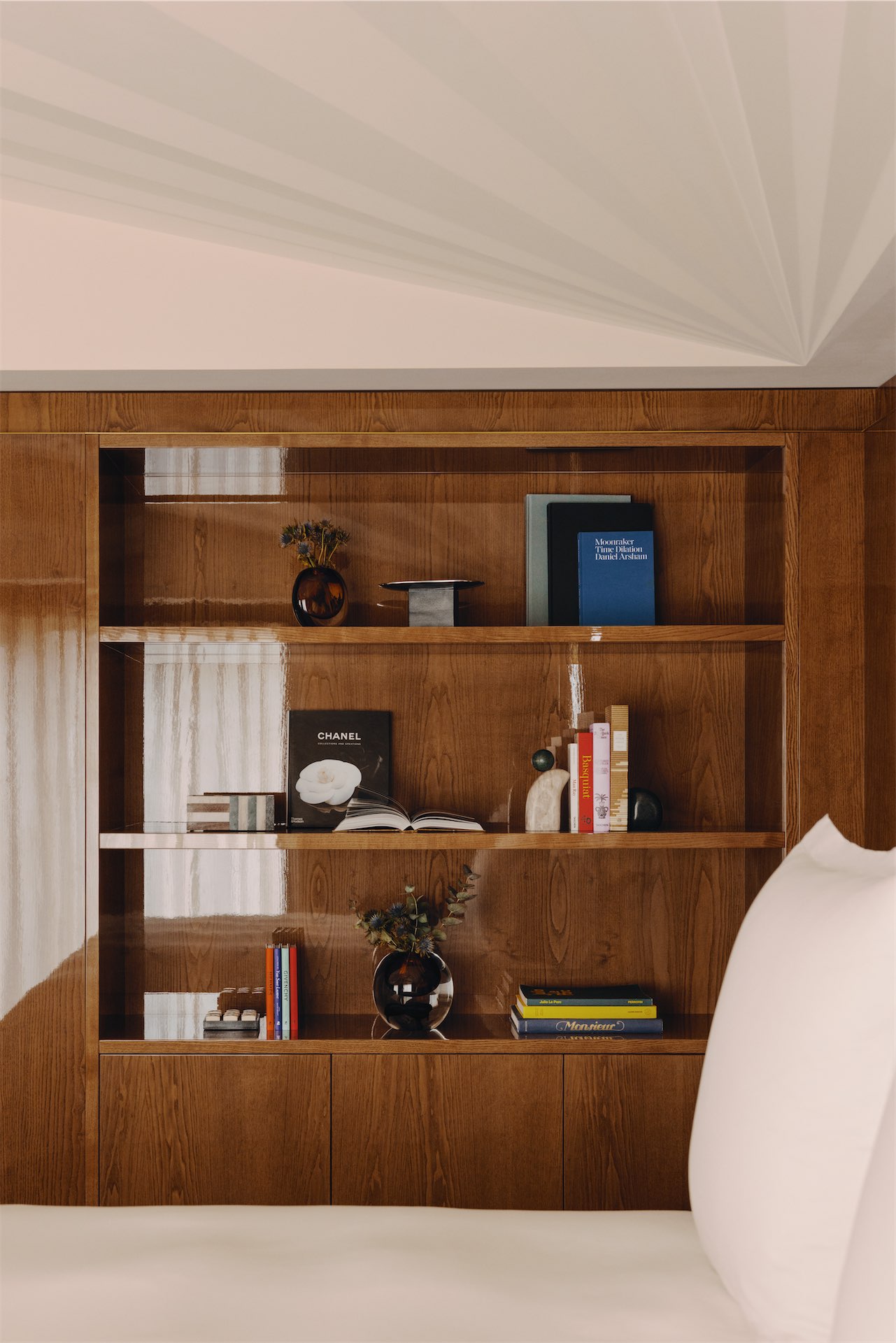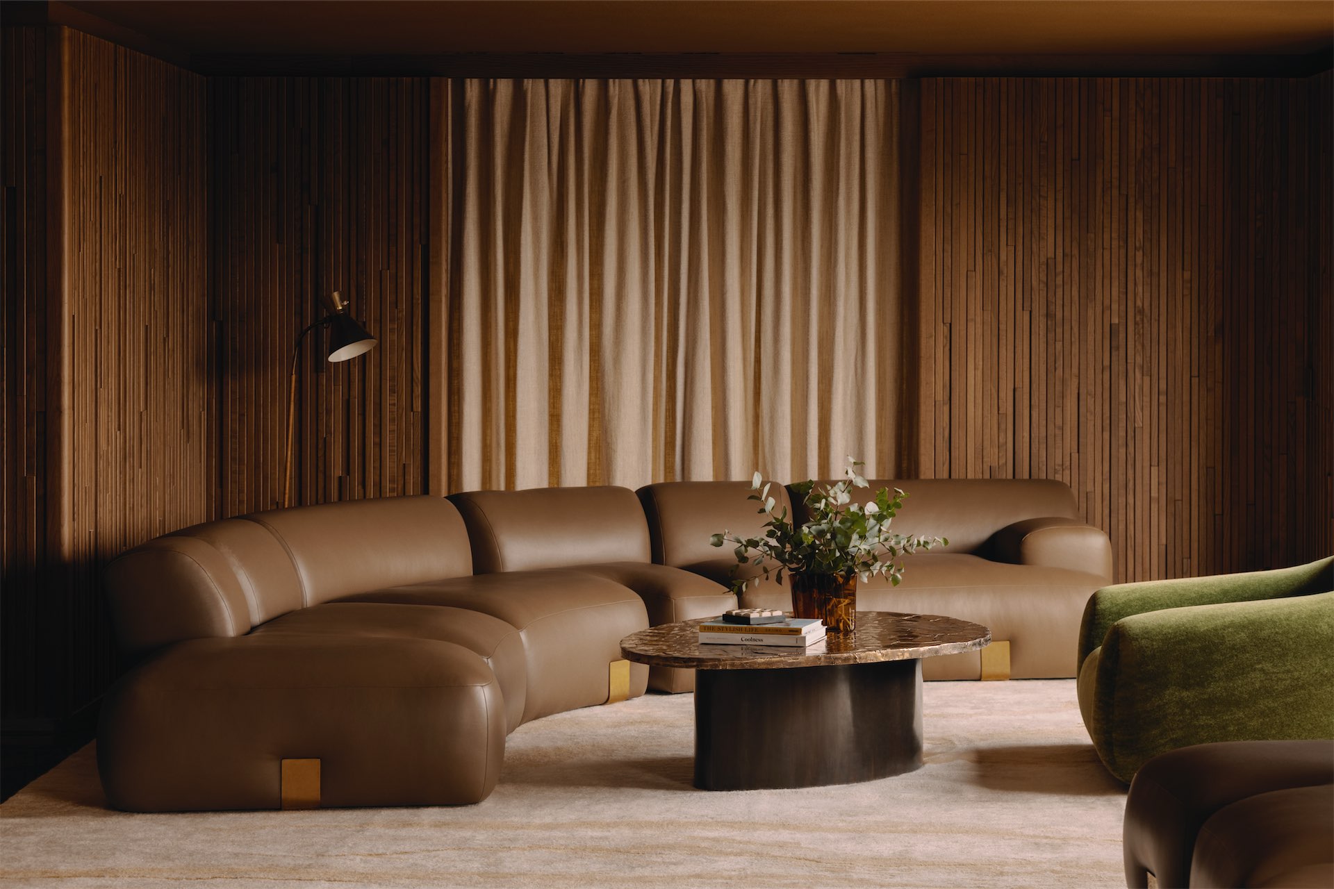Расположенный на самой высокой точке Куршевеля 1850 — Jardin Alpin, отель задуман как камерное пространство с прямым доступом к трассам «Трех долин». Интерьерную концепцию разработал французский дизайнер Тристан Оэр. В проекте он использует массив дерева, камень и медные детали, дополняя их зеркальными поверхностями и скульптурными элементами, которые усиливают ощущение света и глубины, — важный прием для интерьеров с панорамными видами. Пространство выстраивается как частное альпийское шале: гостиные с камином, террасы с видом на горные вершины, сложная пластика входных порталов и продуманная коллекция искусства создают атмосферу не отеля, а закрытой резиденции.