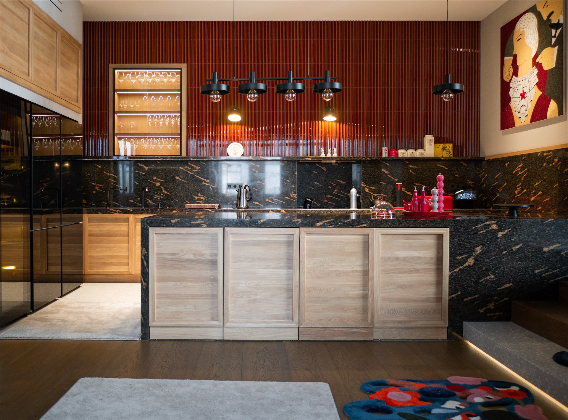 Архитектурный проект вырос из повседневных привычек семьи, из маршрутов и сценариев, которые повторяются изо дня в день. Станислав Азаров, возглавляющий бюро Ångström Bureau, сам стал автором, проектировщиком и генподрядчиком, а иногда вступал в роли человека с инструментом в руках. «Это не просто квартира, а семейная база — место, где все собирается в одну точку: жизнь, работа, дети, искусство, тишина и очень много ручного труда. Когда мы сюда зашли впервые, я сразу понял: это не про “красиво”, а про “возможно”», — поясняет Станислав.