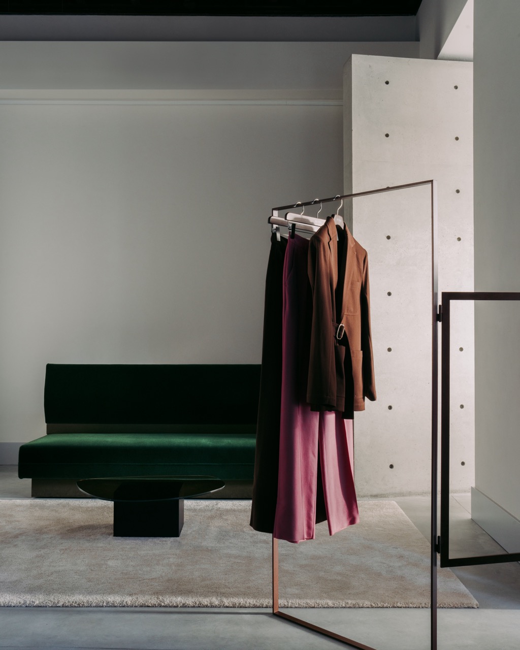 Помимо архитектурных приемов и искусства, в центре внимания оказалась и новая коллекция бренда, представленная как неотъемлемая часть пространства. Chapter 03: Sentimento — это размышление о нежности, хрупкости, ностальгии и «придуманных воспоминаниях», выраженное через сдержанные, но эмоционально насыщенные силуэты. Интерьер и одежда работают здесь как единое целое: Sentimento становится не просто коллекцией, а формой выражения чувств. Интересно, что проект Локателли не декларирует ценности бренда напрямую, а позволяет им проявиться через материалы, масштаб и тишину, которые остаются с посетителем надолго.
