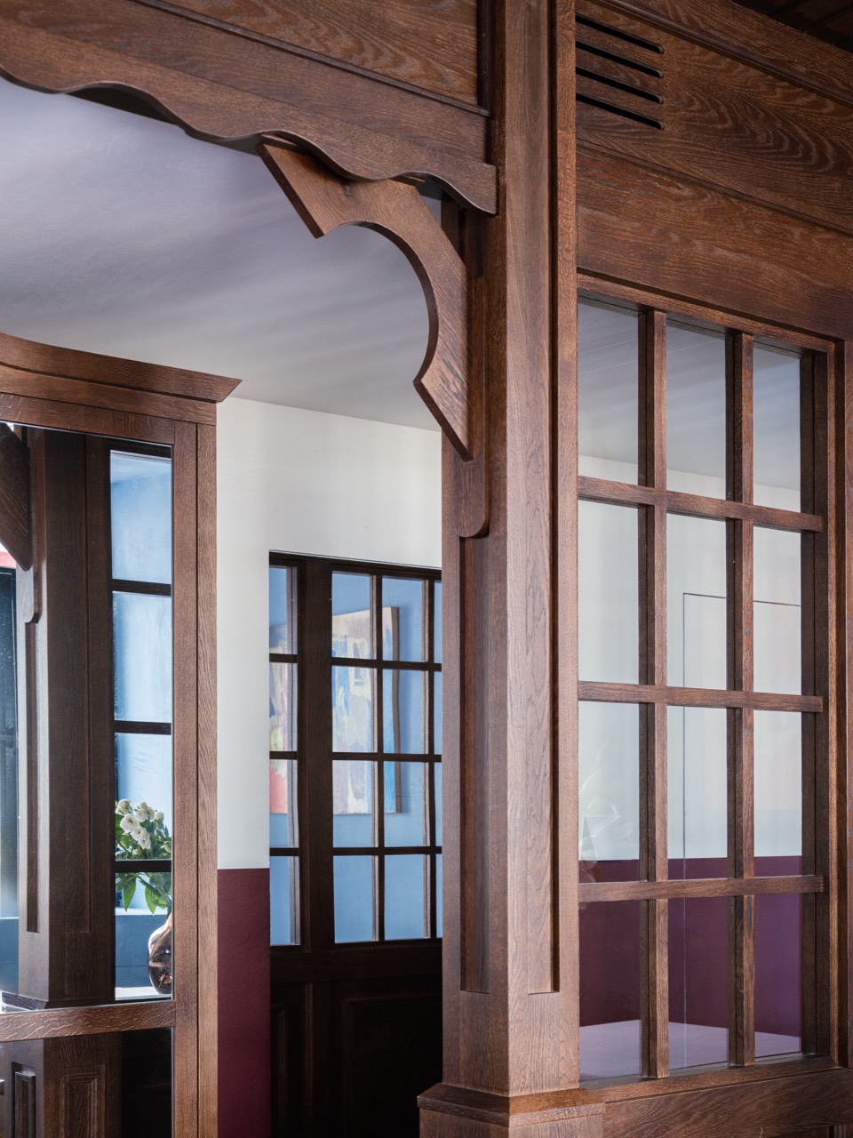 Интерьер «Шато Руставели» собран из узнаваемых деталей, но работает по другим правилам. Без кича и буквальности, с уважением к традиции и с попыткой показать, что Грузия может быть современной, чистой и архитектурной.