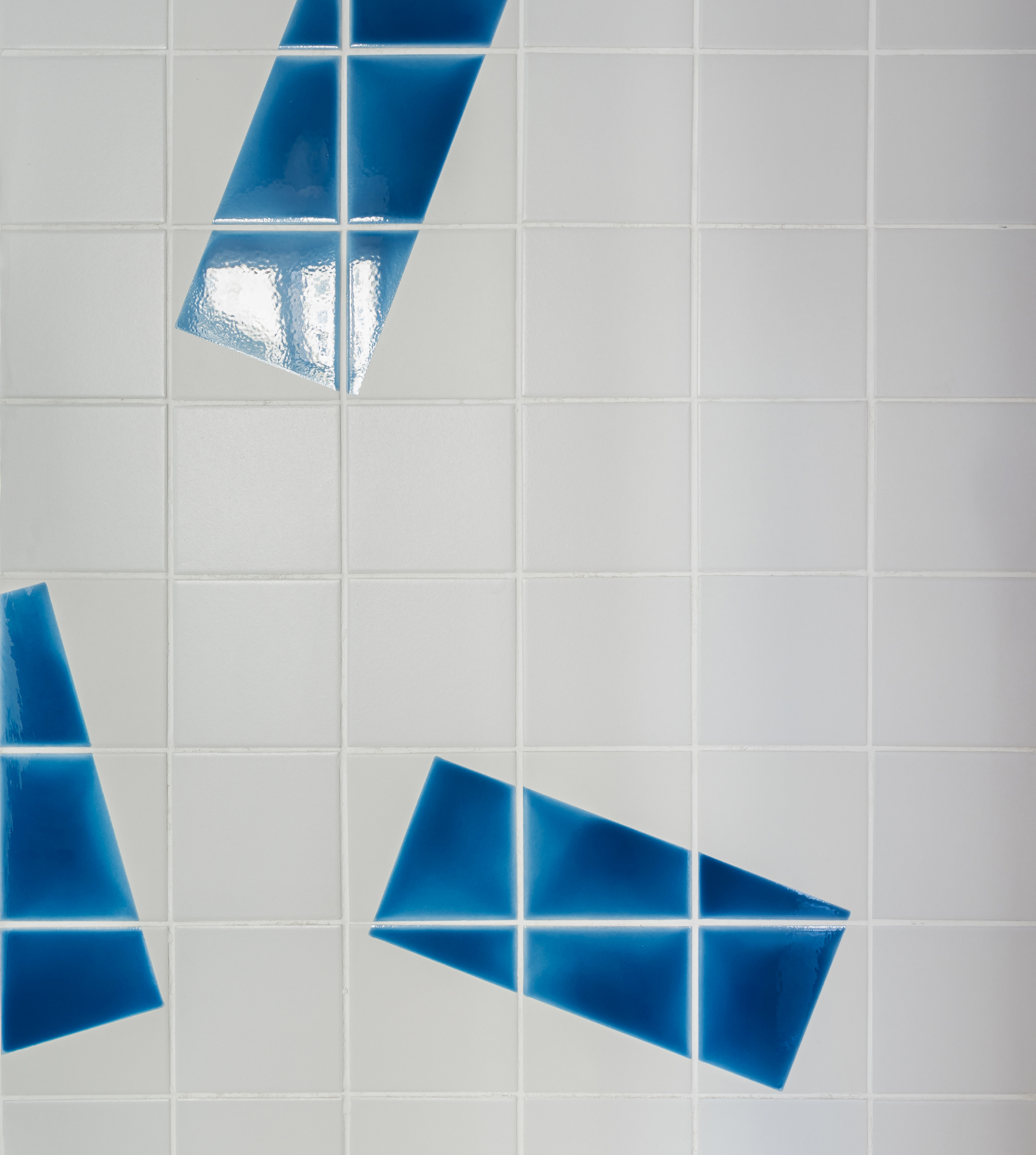 Акцентными цветами проекта стали небесно-голубой и ярко-синий. Синий, цвет бренда, использован в уникальных предметах мебели и в фирменном паттерне — ярких штрихах на плитке в зоне бара, порталах в зал и в виде мобилей в санузле. Потолок кафе, окрашенный в голубой цвет, добавляет ощущения воздушности всему пространству. Этот цвет появляется и на центральной колонне в виде градиента, перетекающего от потолка к полу.