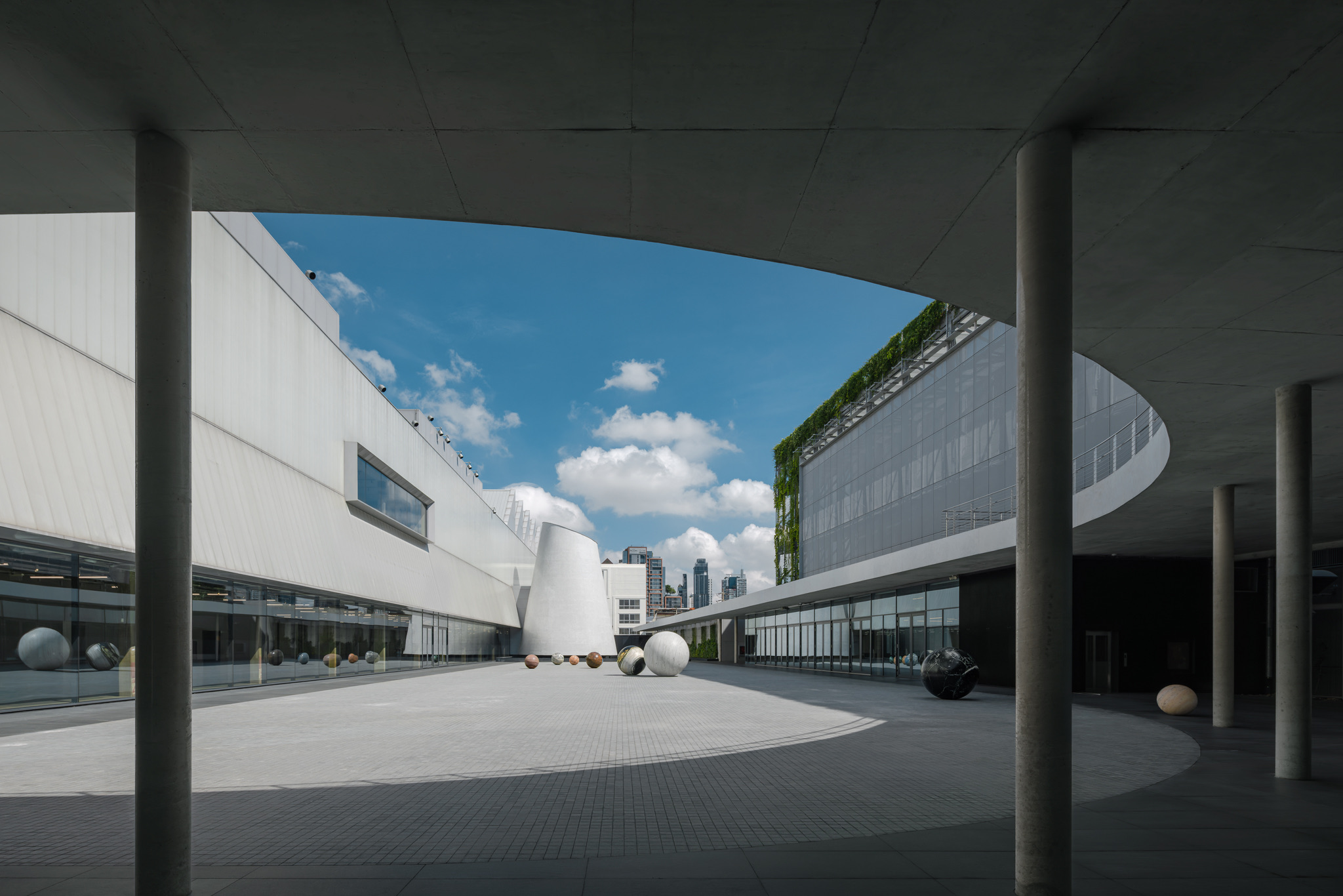 Архитекторы адаптировали каркас склада 1980-х годов в галерею общей площадью около 7000 м2. Стратегия адаптивного использования сохранила на первом этаже оригинальные бетонные колонны, отсылающие к истории здания, а на втором — тайско-китайские оконные решетки. На верхнем уровне расположены «белые кубы» выставочных пространств, освещаемые через световые фонари.
