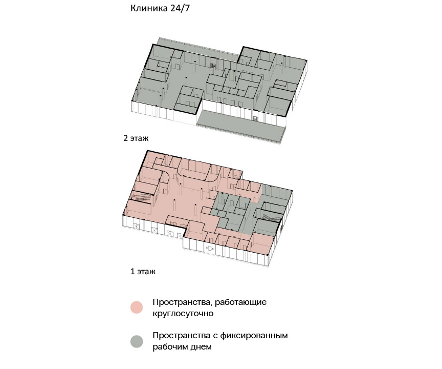 Для медицинского персонала создаются зоны совместной работы, обучения и обмена опытом. Это повышает вовлеченность врачей, способствует их профессиональному росту и снижает уровень стресса.