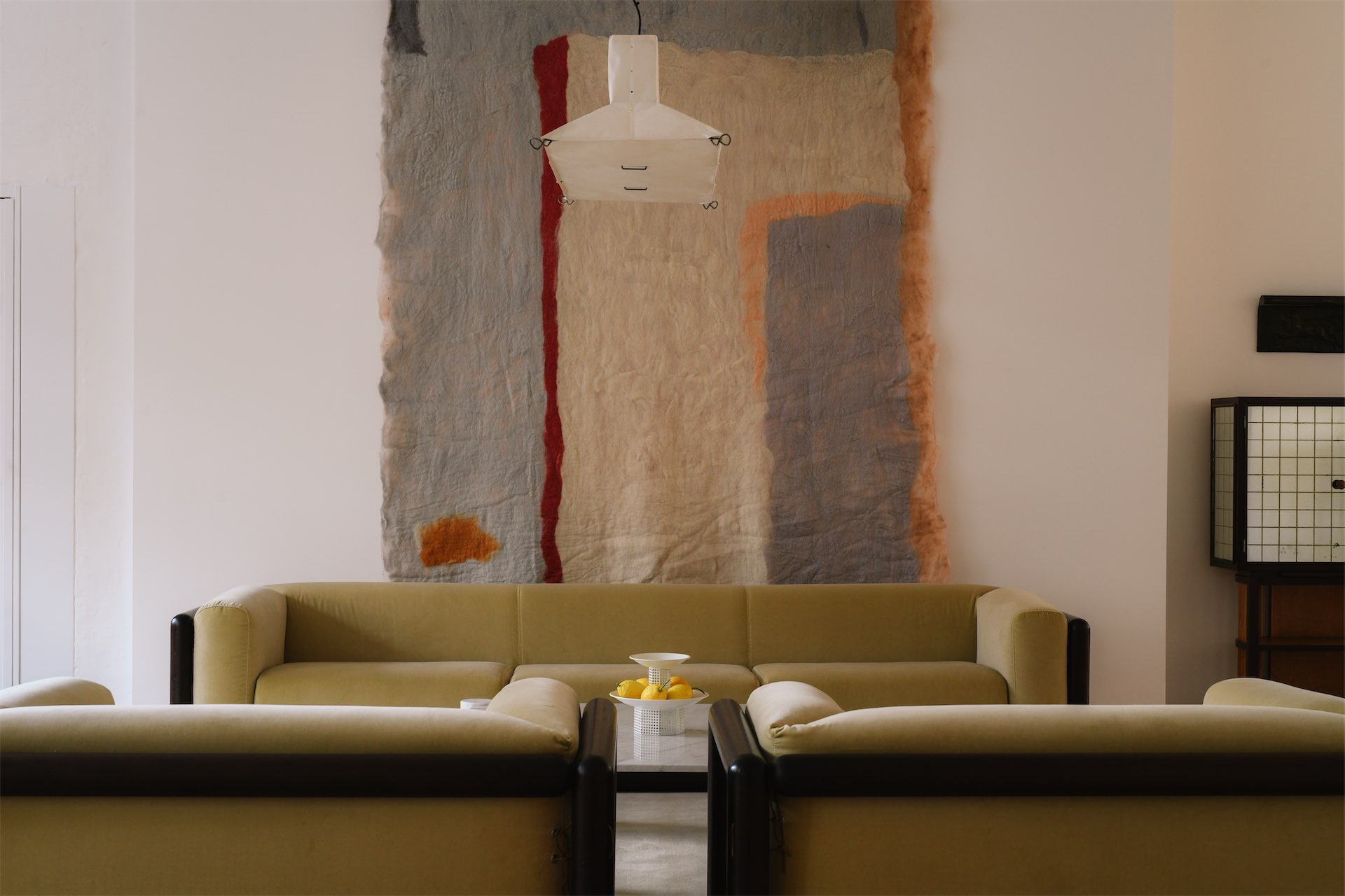 В основной части экспозиции можно увидеть мебель культовых итальянских дизайнеров, таких как Анджелло Манджаротти и Карло Насон. Они соседствуют с современными произведениями, в том числе текстильными работами Марианы Чконии и проектами Грейс Аткинсон, демонстрируя преемственность в истории дизайна. Среди узнаваемых объектов — кресла Карло Скарпы, кофейный стол Jumbo Гаэ Ауленти, диван Camaleonda Марио Беллини и светильники Акилле Кастильони.