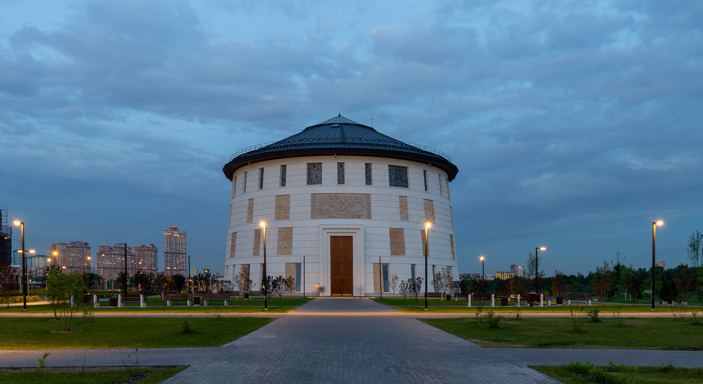 В основу концепции светового решения легла идея создать особый образ здания в темное время суток: сформировать эмоциональное восприятие сакрального через внешний облик, подчеркнув с помощью света чистоту и легкость архитектуры. С помощью архитектурного освещения было решено создать образ словно парящего над землей здания, устремленного белоснежным фасадом в золотых лучах ввысь над темной землей.