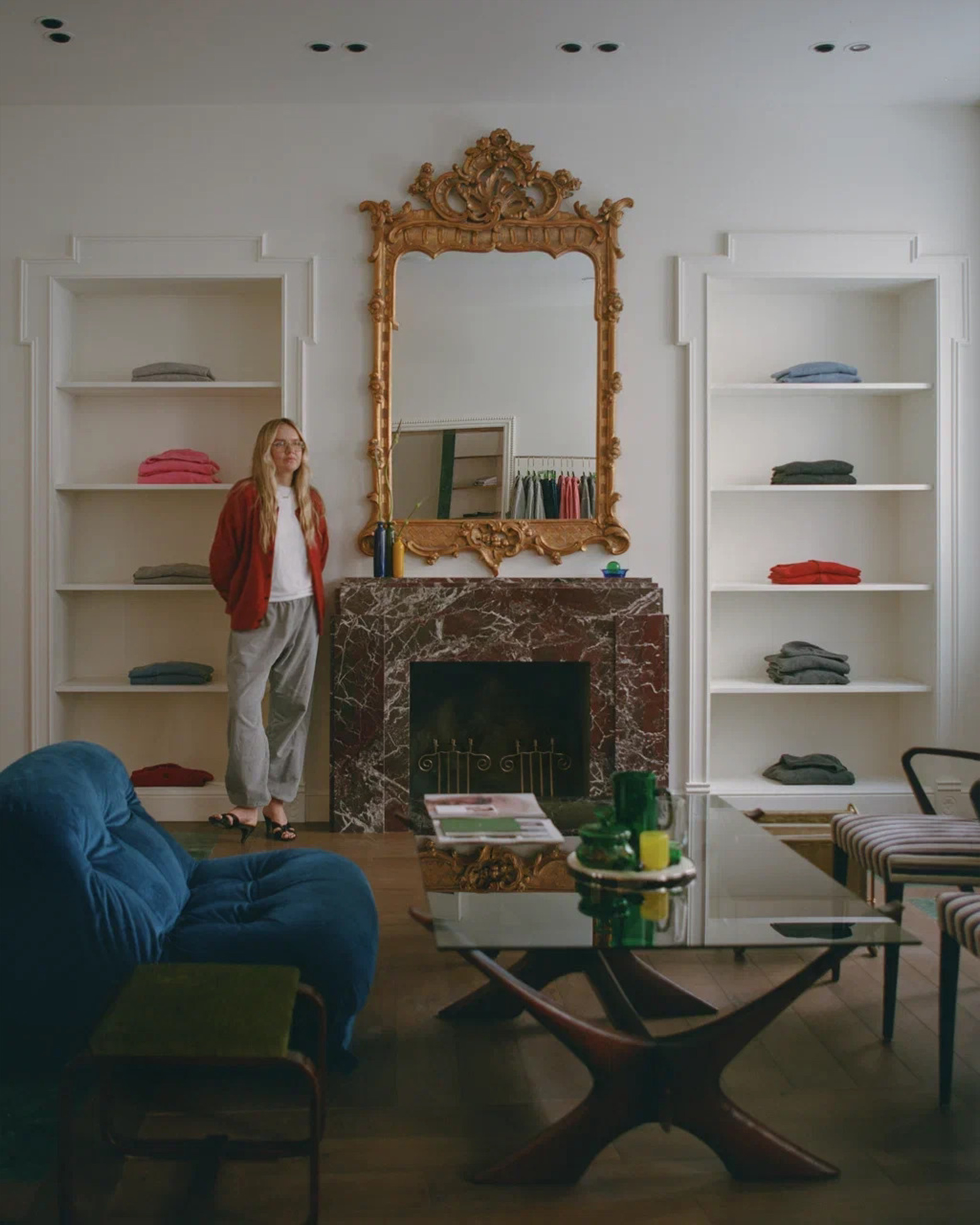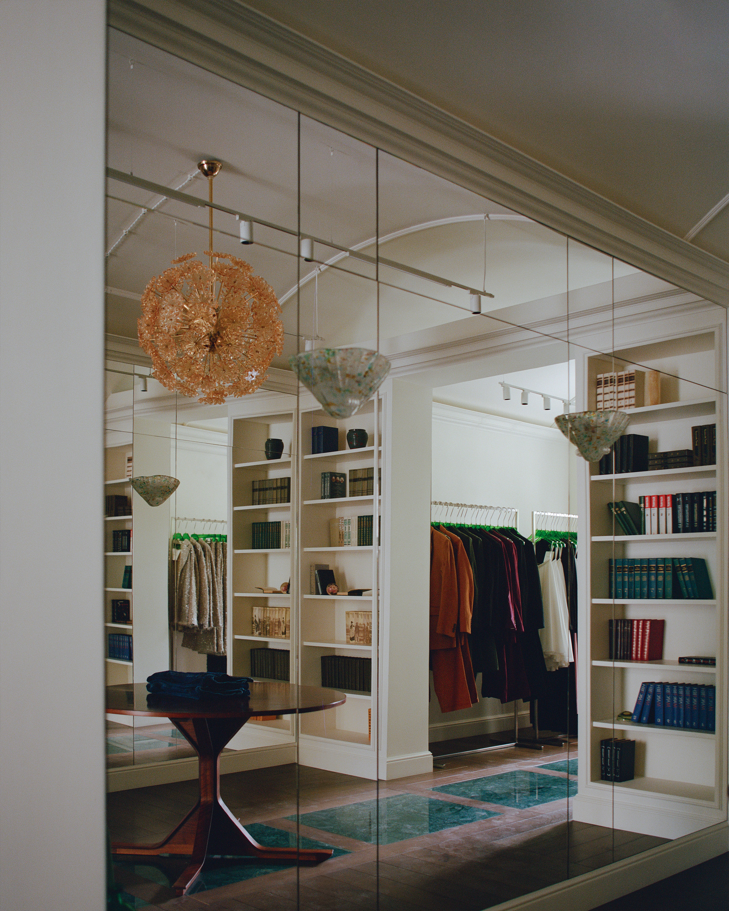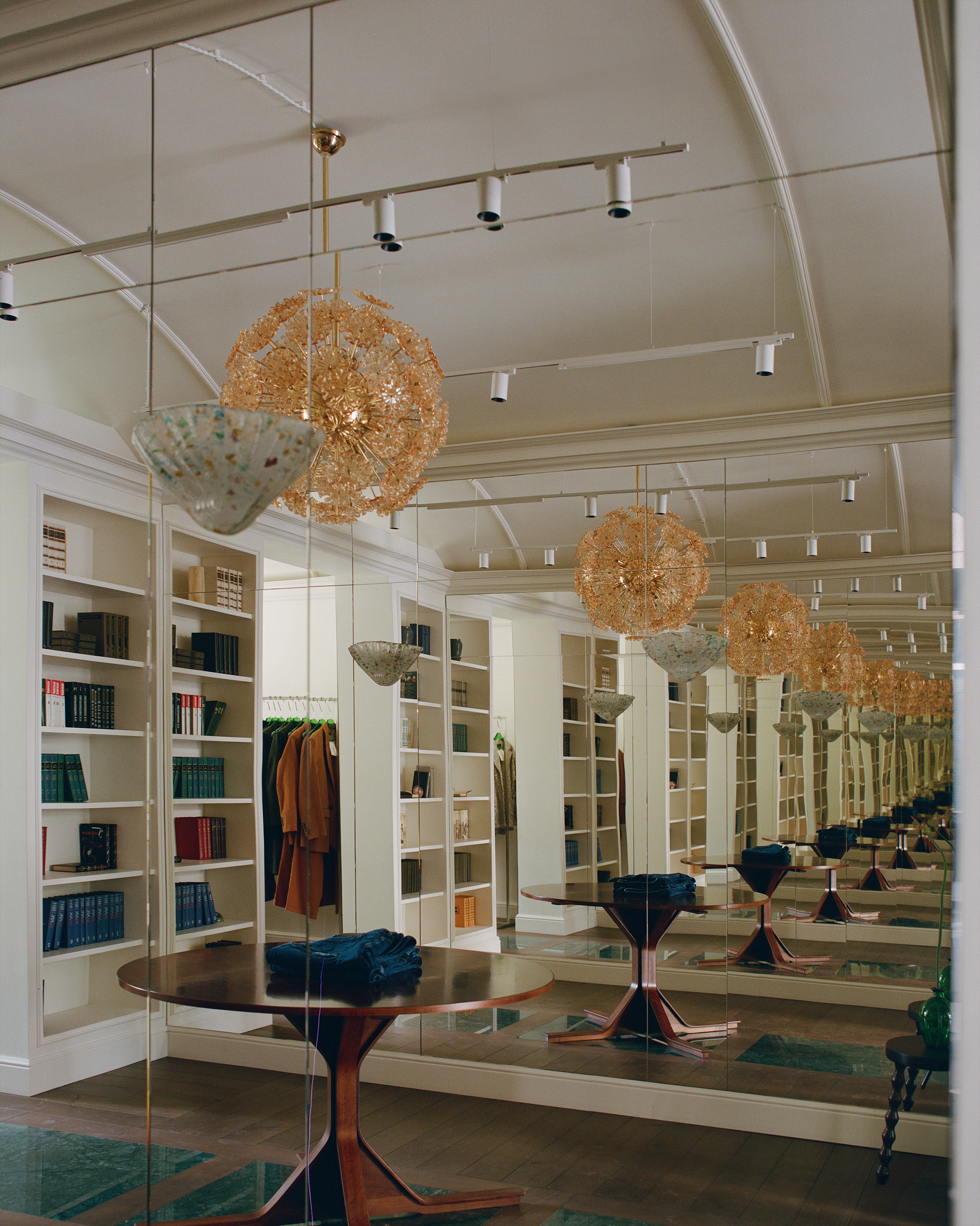 «Я обожаю винтаж во всех его проявлениях. Например, все предметы в бутике на Никитской — результат моего личного кропотливого поиска. В бутике на Патриарших прудах 90% — это уже знаковый винтаж. Массивный письменный стол из розового дерева (палисандра!) 60-х годов. Антикварная французская консоль, зеркало при входе из Муранского стекла, бра из венецианского стекла, настольные лампы именитых дизайнеров, стулья из Нидерландов 50-х годов. Натуральный мрамор на полу, стенах и окнах, дубовый паркет, гипсовая лепнина, английские обои, много зеркал и особая гордость — подогреваемый мраморный пол малахитового цвета в примерочных, так как наши покупатели часто приходят с детьми, которые любят отдыхать на полу, пока мама модничает», — отмечает Ната Питькина, основательница бренда.