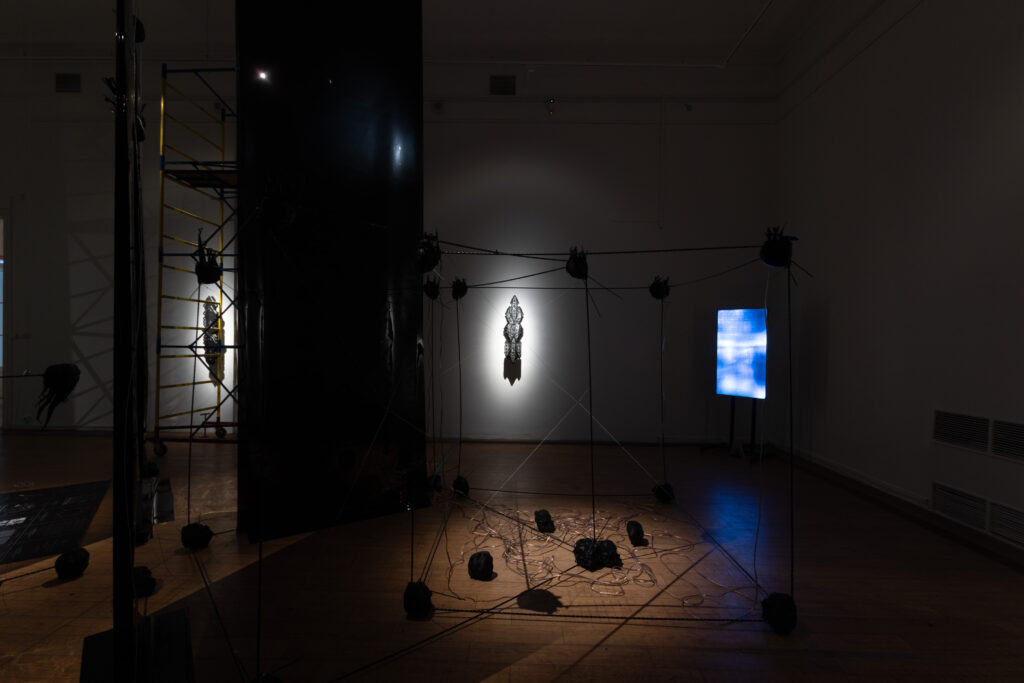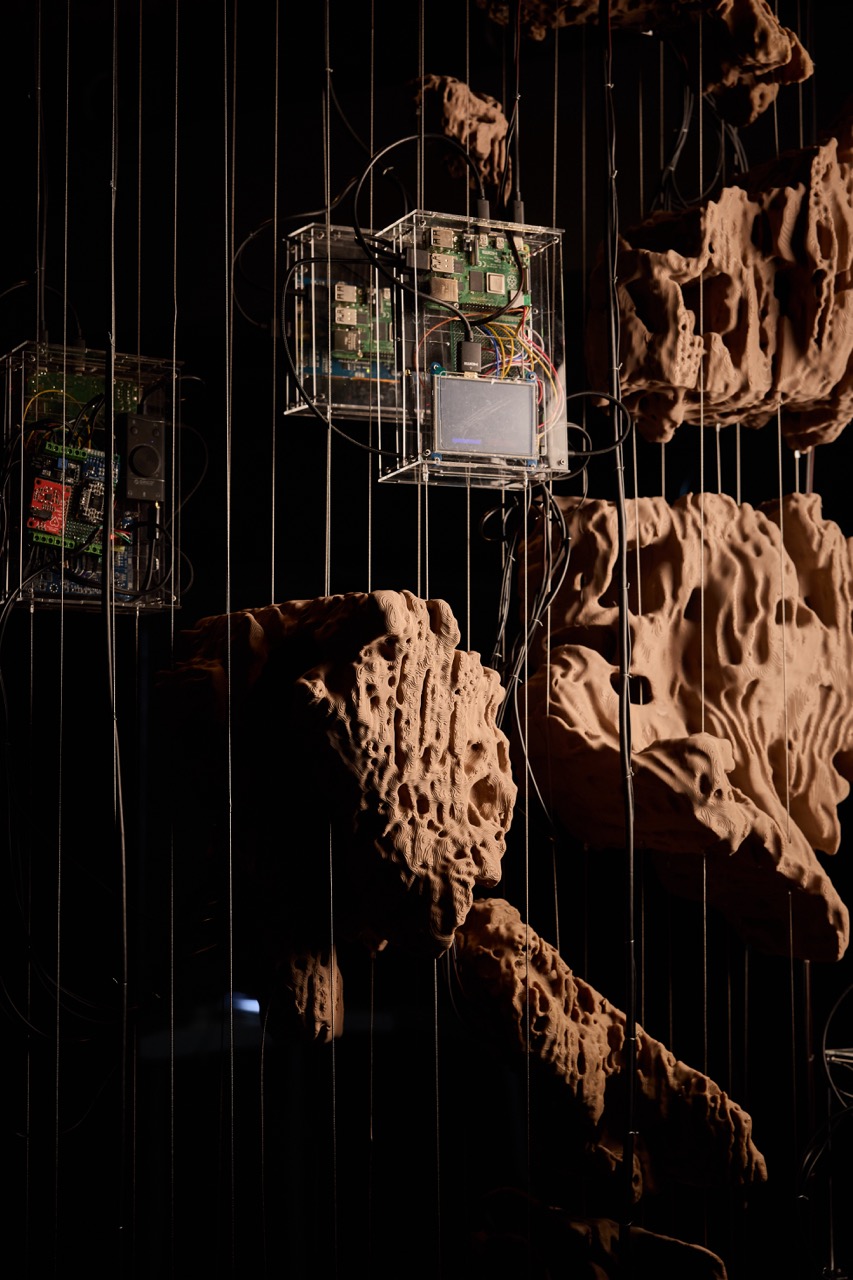 На выставке, куратором которой выступил Глеб Глонти, основатель звуковой лаборатории и агентства культурных инициатив kotä, представлены инсталляции, киберорганические скульптуры, экспериментальные звуковые ландшафты, работы с искусственным интеллектом, биосенсорами и нейросетевыми алгоритмами, скульптура, графика, фотографии, видео и партитуры, дополненные работами из коллекции ММОМА.