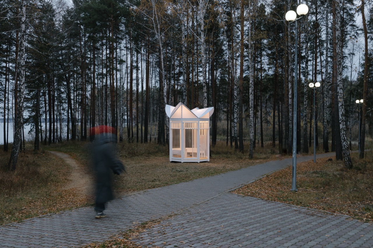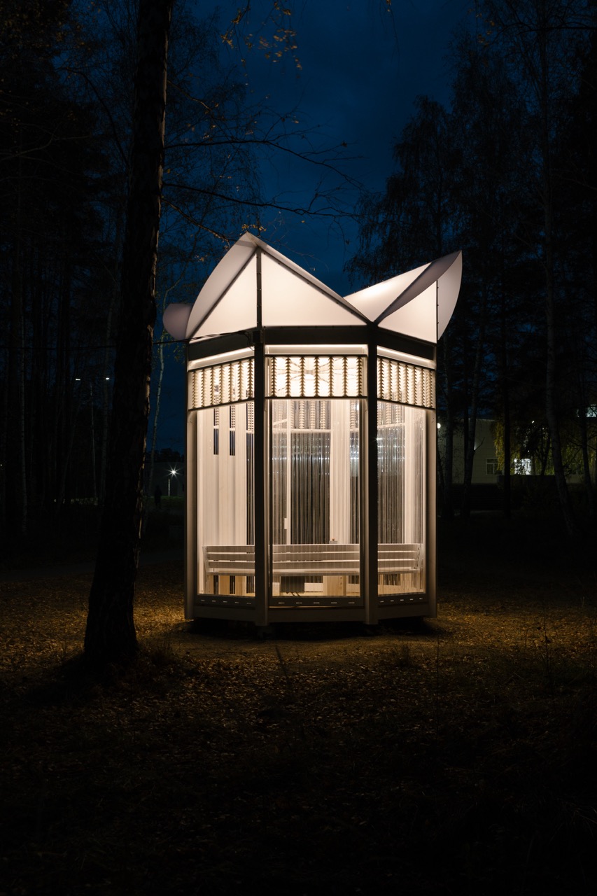 Сама резиденция проходила в начале августа. Изначально у нас был план проведения соучастных сессий с жителями, но, оказавшись на месте, стало понятно, что годами отработанные схемы здесь не нужны. Каждый день к нам в назначенное время приходили разные люди и рассказывали об истории Рефтинского, о себе, своей жизни в этом месте и о том, что им хотелось бы видеть в родном поселке. А потом мы все вместе отправлялись на долгие прогулки по окрестностям. Один из запросов жителей звучал так: «Нам нужна диковинка, где можно собираться и которая передает дух энергетики». Уже в поездке проявился образ ротонды со скульптурным светящимся навершием — цветком, внутри которой хранятся истории, как сказки в шкатулке. И, хотя это архитектурный объект, у которого есть понятная типология (беседка) с понятной функцией (укрытие), все это всего лишь медиум. Суть его состоит не в утилитарной пользе, а в «диковинности», избыточности формы, попадая внутрь которой, тебя укутывают «теплые истории». Для меня было особенно ценно, что для горожан это полезный и нужный объект. Более подробно с проектом можно ознакомиться тут.