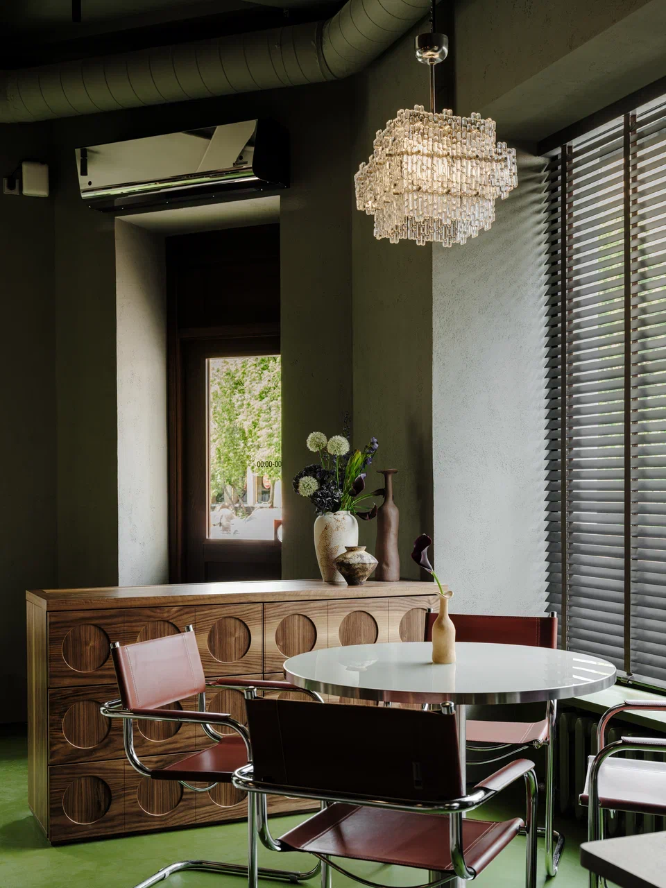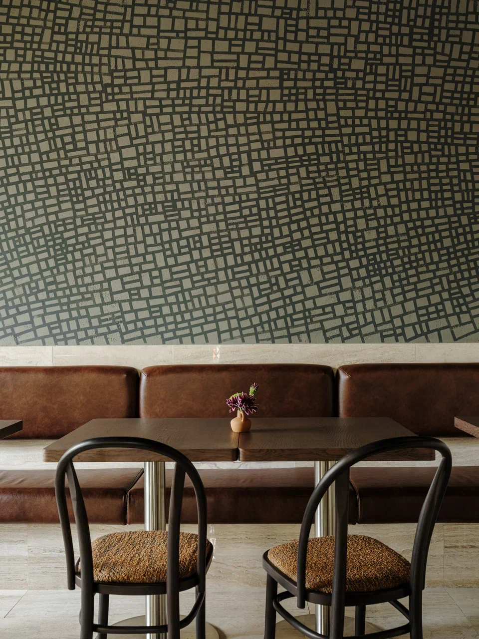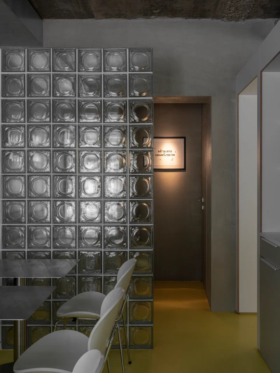 Архитекторы признаются, что для них Тбилиси — это и влияние европейских столиц — Парижа и Берлина. В центре зала расставлены классические деревянные стулья и столы со скатертями — оммаж Франции. Вдоль окон расположены стулья из нержавеющей стали и старые немецкие индустриальные светильники, привезенные из Германии, как отсылка к улицам Берлина.