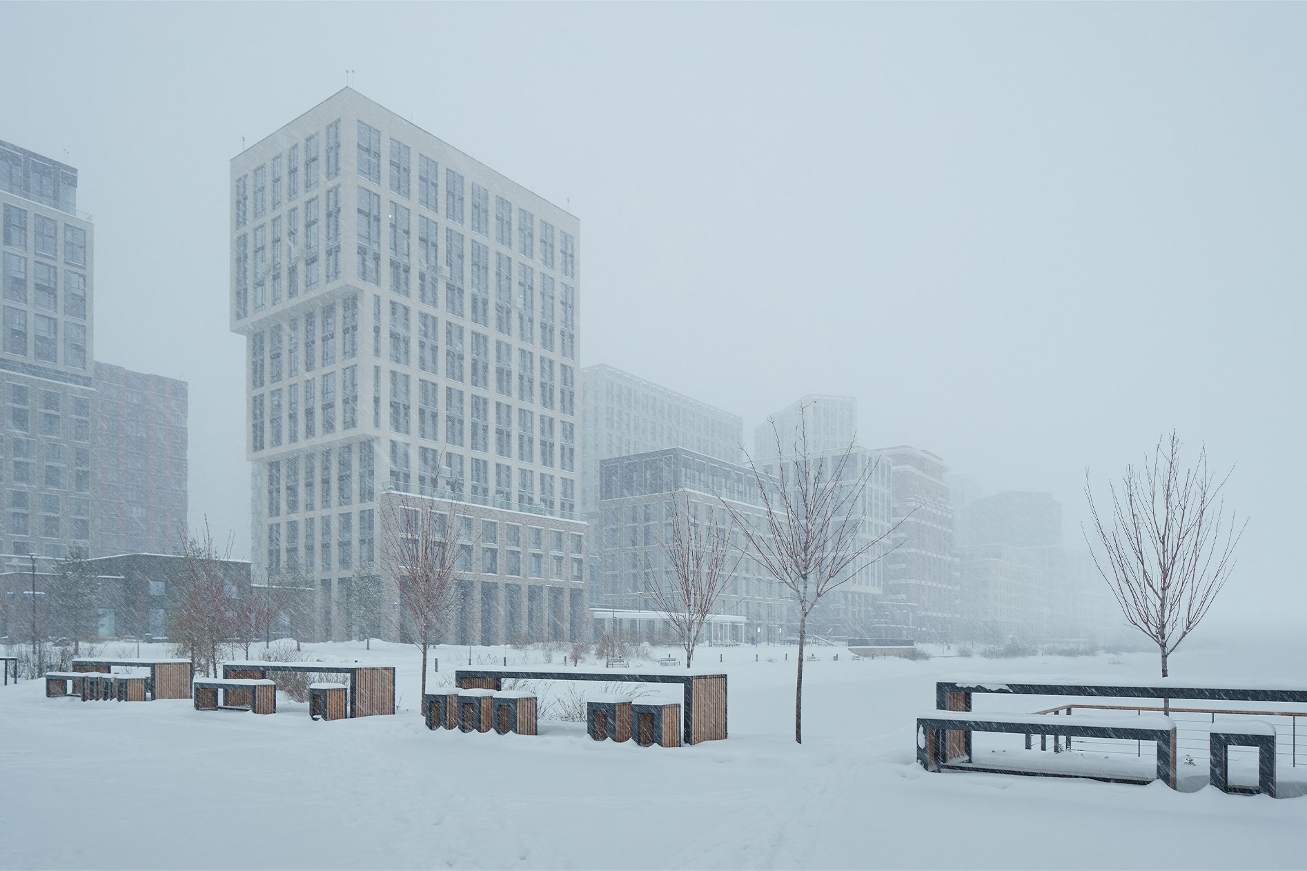 Съемка ЖК Lucky стала для меня настоящим архитектурным путешествием, которое длилось целый год. Представьте: зима, весна, лето, осень… Каждый раз в ходе очередной стадии готовности я открывал этот комплекс заново. Было невероятно интересно наблюдать, как меняется не только облик Lucky в разные сезоны, но и как он начинает жить своей жизнью, наполняясь людьми и событиями. За эту уникальную возможность я благодарен девелоперу Vesper.