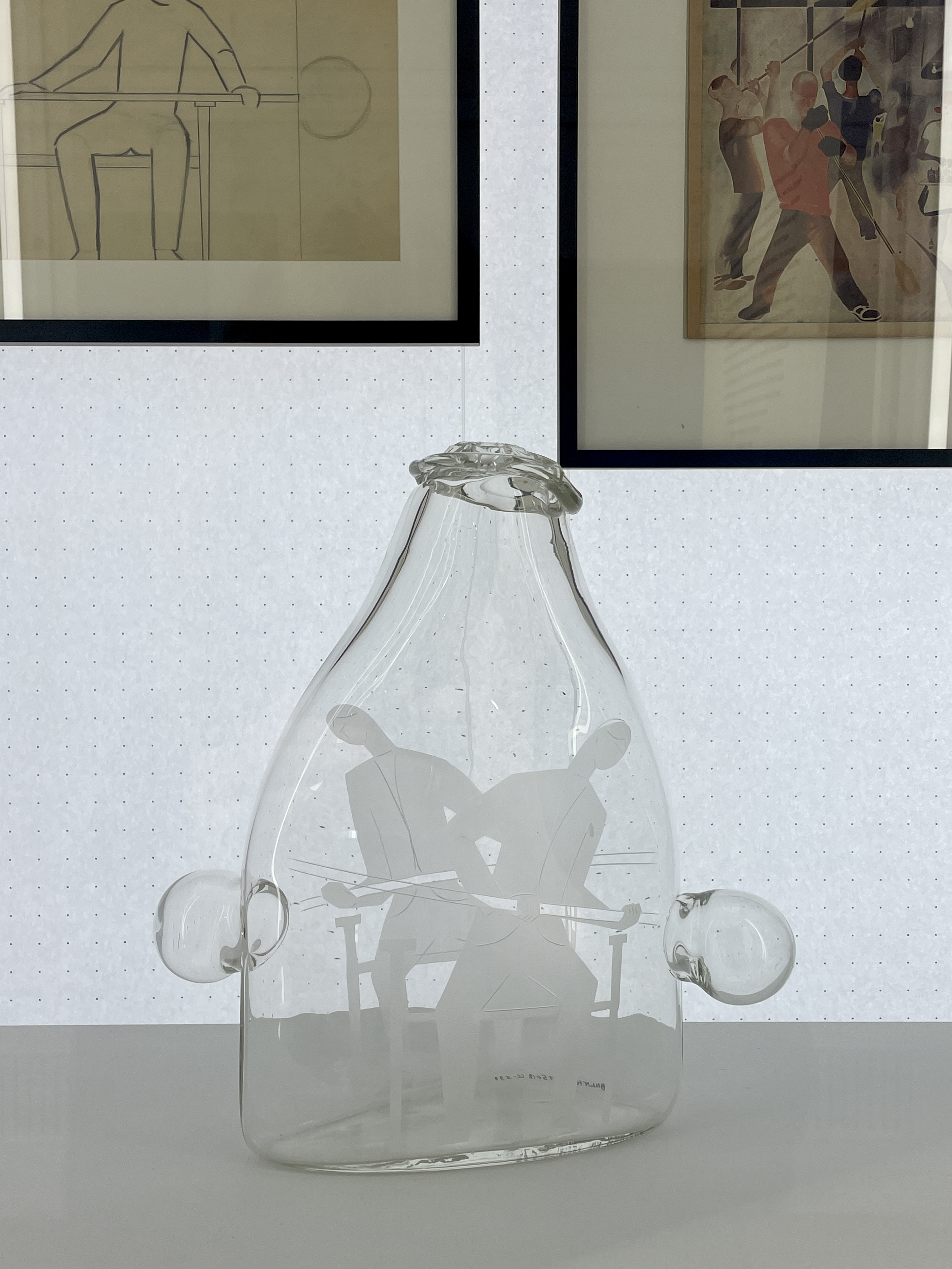 На выставке «Во всём блеске. Хрусталь от формы до огранки» мы выступили кураторами и авторами экспозиционного решения. Её идея родилась из нашего увлечения хрусталём. Чем больше мы работали с этим материалом, тем сильнее нам хотелось показать каждый этап создания предмета. Впервые реализовать нашу задумку мы смогли на площадке МИРА центра в Суздале в 2023 году: выставка «И блеск, и треск» рассказывала об этапах рождения хрустального изделия через предметы Гусевского хрустального завода, которые сопровождали живописные и графические произведения-ассоциации из МИРА коллекции.