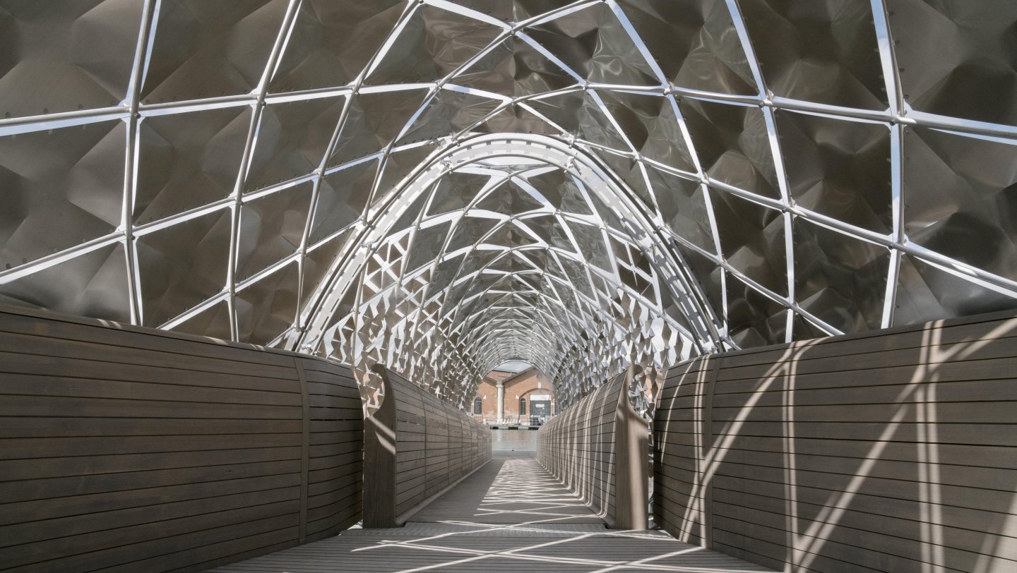 В течение первой недели биеннале мост будет служить транспортным узлом с нулевым выбросом, а в будущем может стать частью городской сети. С одной стороны будут пришвартованы водные велосипеды Schiller, а с другой — электрические лодки Frauscher x Porsche 850 Fantom Air, в которых используются модифицированные моторы Porsche Macan Turbo.