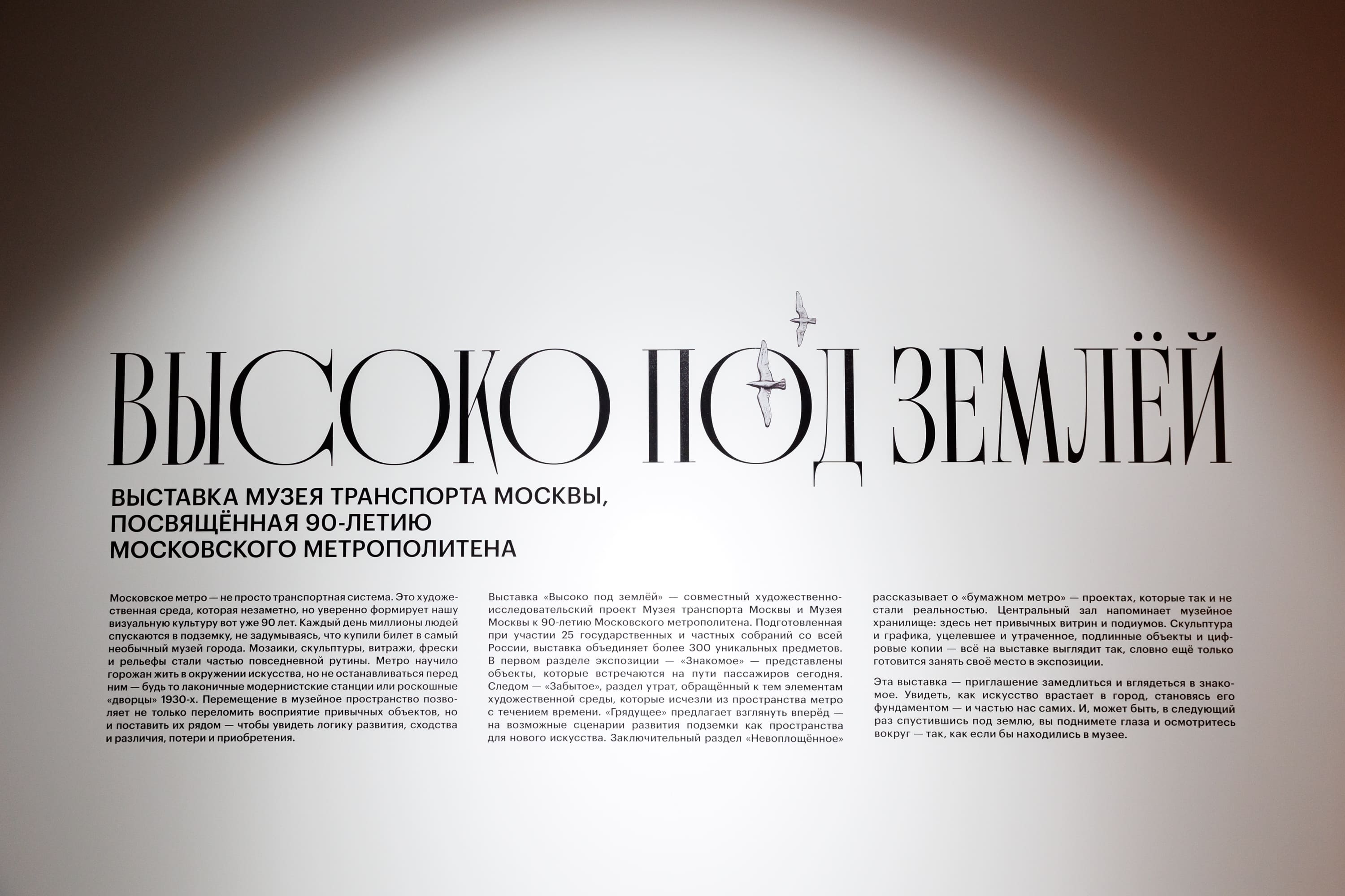 К 90-летию Московского метрополитена Музей транспорта Москвы и Музей Москвы представили выставку «Высоко под землей» — первый художественно-исследовательский проект, посвященный искусству в московском метро.
