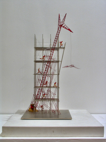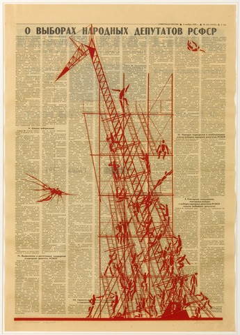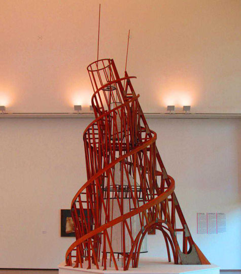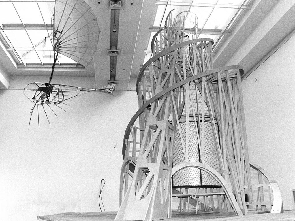 В следующий раз я встретил «Башню» в 1984 году на выставке в музее Маяковского. Экспонировалось множество работ художников 1910-1920-х годов, были масштабные реконструкции Константина Мельникова и Густава Клуциса. Но главным экспонатом стала «Башня», проткнувшая все три этажа музея. В этой выставке был и раздел современных художников с их посвящениями авангарду, я в нем участвовал, понимая, что между мной и Татлиным не такое большое расстояние. Я говорю о времени, не о значении для искусства. Через несколько лет я сделал свой оммаж художнику — «Красную вышку» — специальную конструкцию для испытаний «Летатлина».