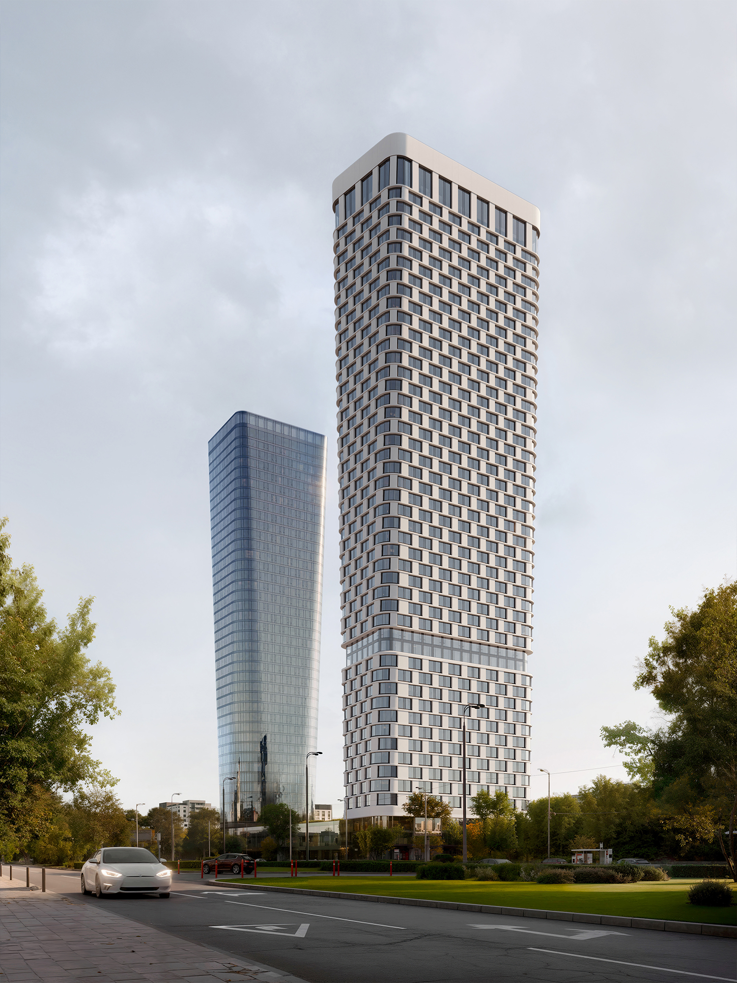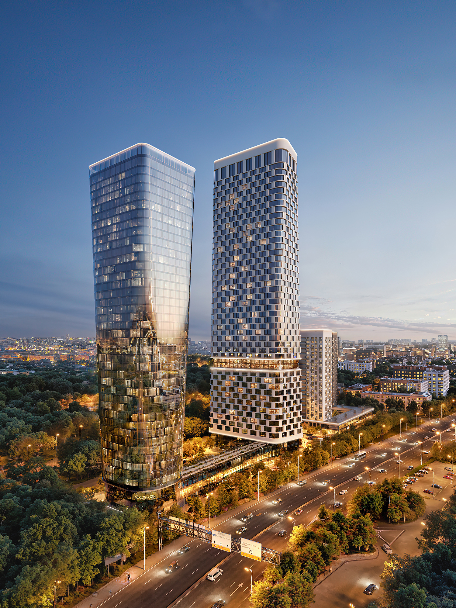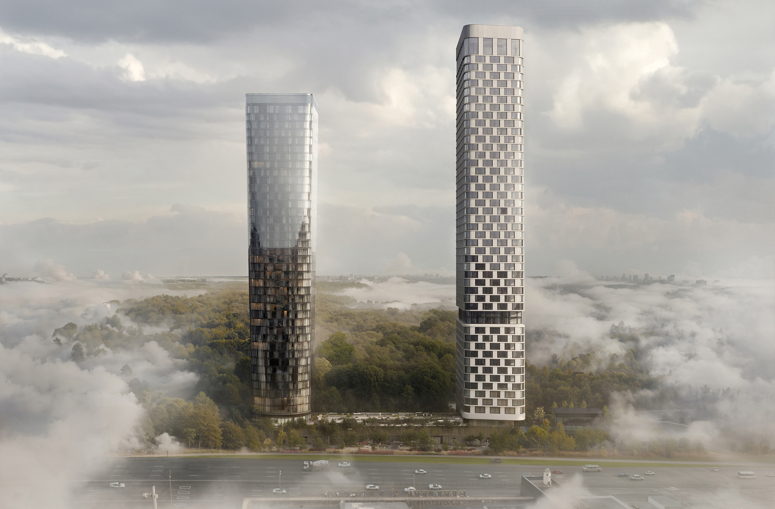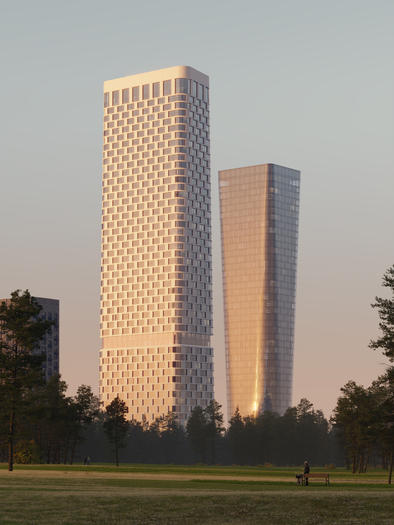 Проект жилого комплекса Solos разработан архитектурным бюро Kleinewelt Architekten: растворяющиеся в воздушной дымке минималистичные «прозрачные» башни (41 и 49 этажей) с панорамным остеклением возвышаются рядом с зеленой артерией города — парком «Сокольники», открывая панорамный вид на город, природу и предоставляя возможность наблюдать за сменой сезонов (функция «встроенной» медитации!). Архитектура и природа здесь не соперничают, а гармонично дополняют друг друга. Открытость и проницаемость, честность пространства и «обнаженность» решений становятся главными ценностями проекта.