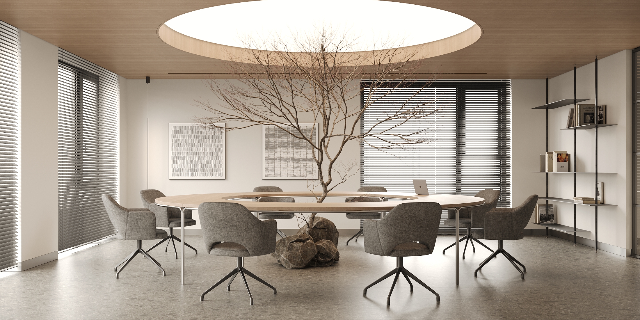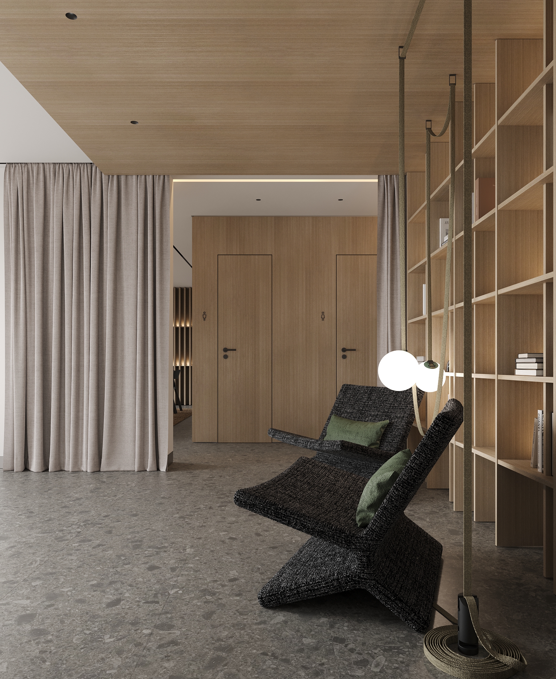 За главное объединяющее пространство проекта Solos — лобби — отвечает бюро RYMAR.studio. Дизайнеры поддержали общую концепцию и постарались передать ощущение открытости, прозрачности пространства: в лобби светлые тона, плавные линии, много воздуха, современные материалы и естественное освещение.
